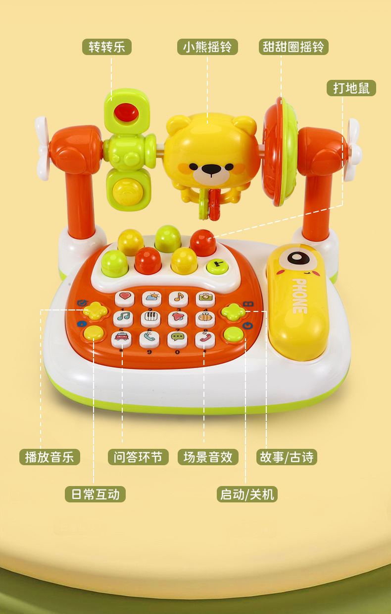 아기 아기 휴대 전화 어린이 조기 교육 교육 다기능 전화 장난감 음악 엄마와 아기 딸랑이 두더지 잡기