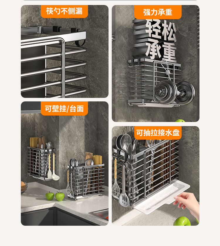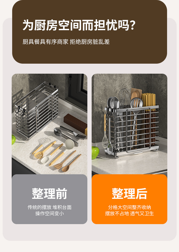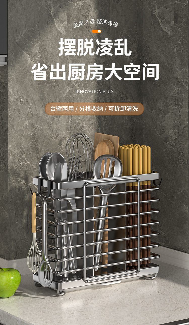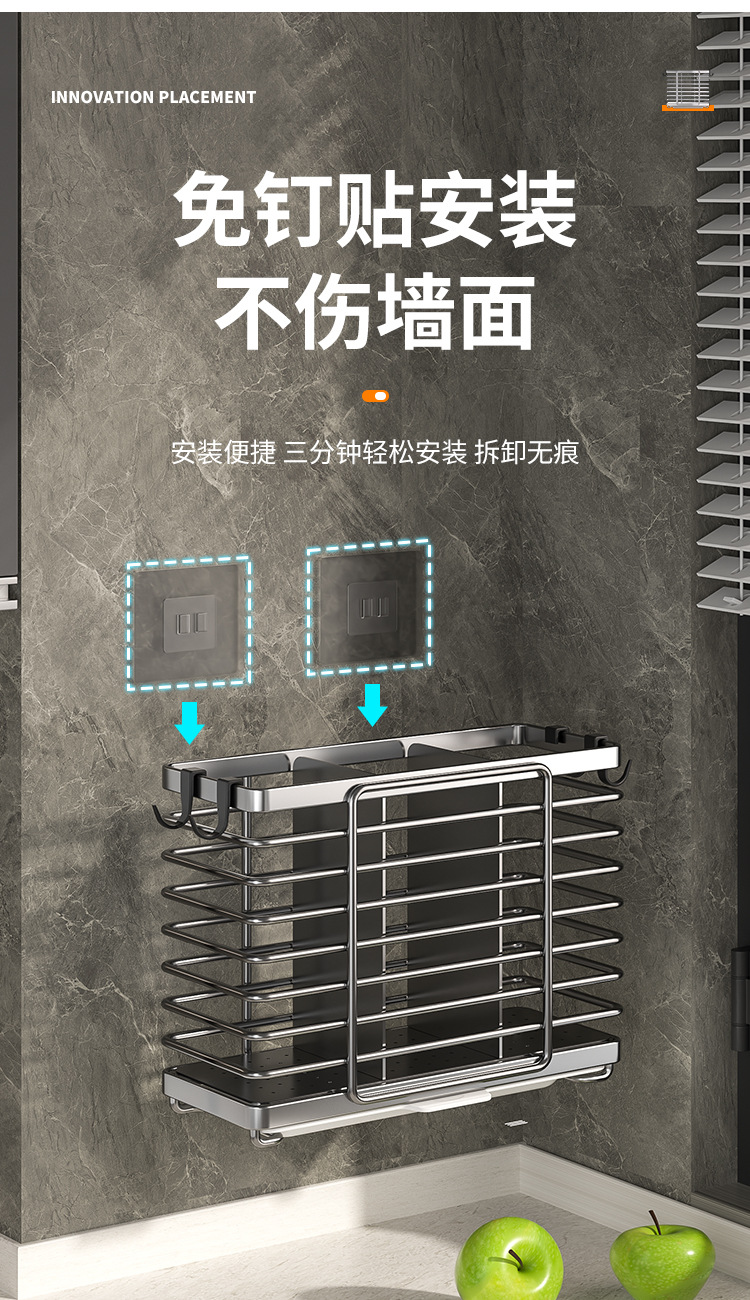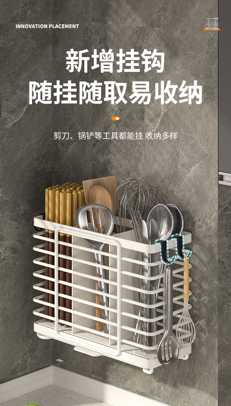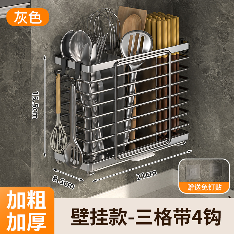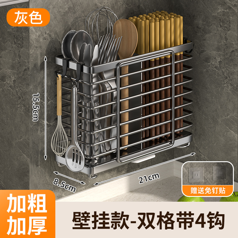가정용 주방 펀치없는 벽걸이 형 조리대 이중 용도 식기 숟가락 칼 젓가락 정리 및 보관 선반스토어 가기