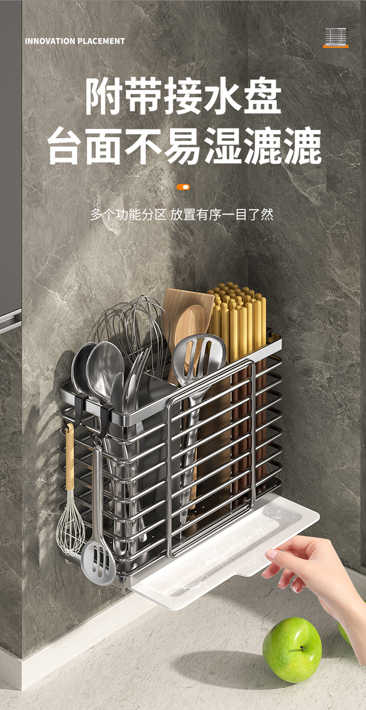가정용 주방 펀치없는 벽걸이 형 조리대 이중 용도 식기 숟가락 칼 젓가락 정리 및 보관 선반
