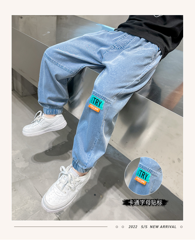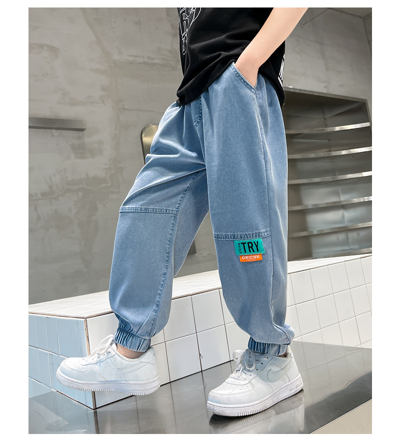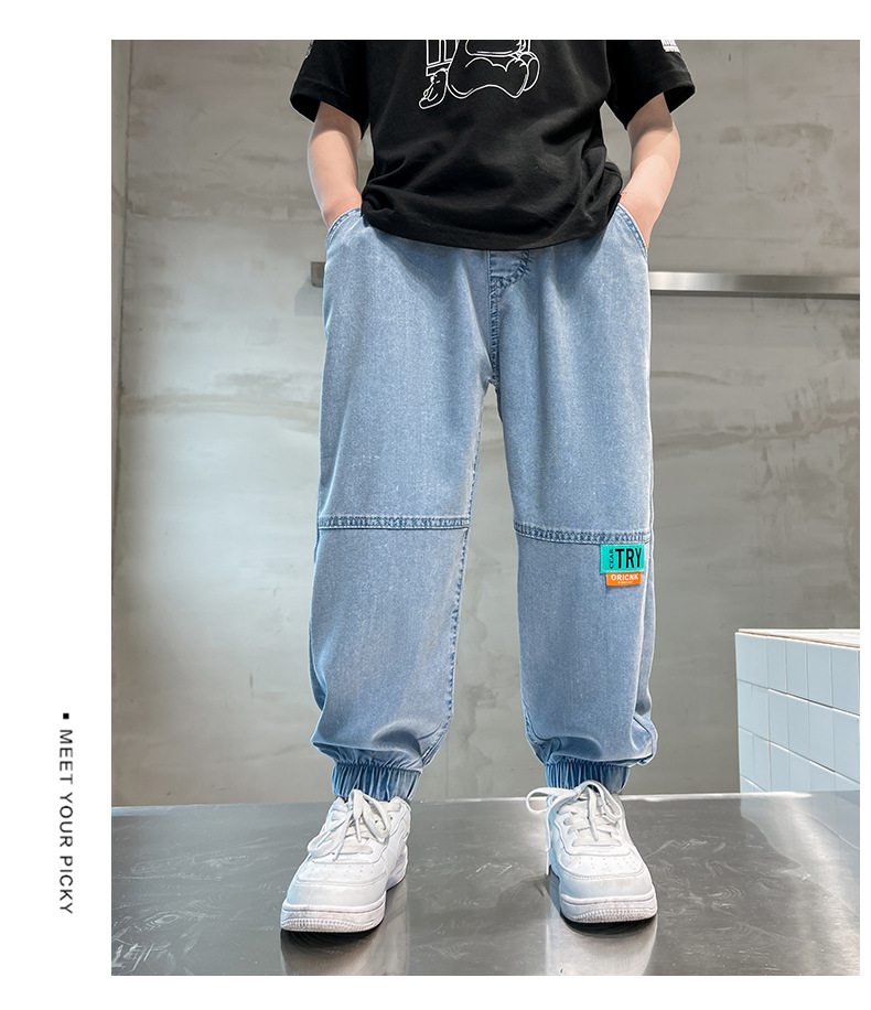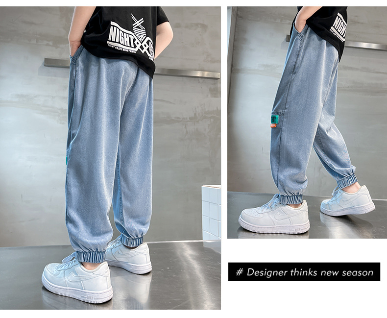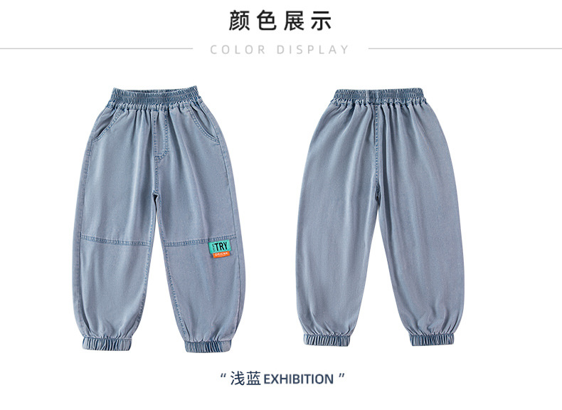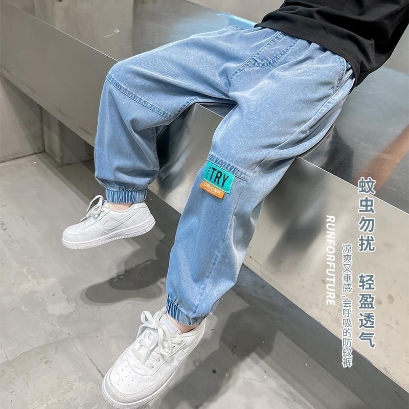 남아용 바지 여름 얇은 텐셀 청바지 한국식 중대형 아동 모기 방지 바지 다용도 아동 청바지 트렌디 브랜드
