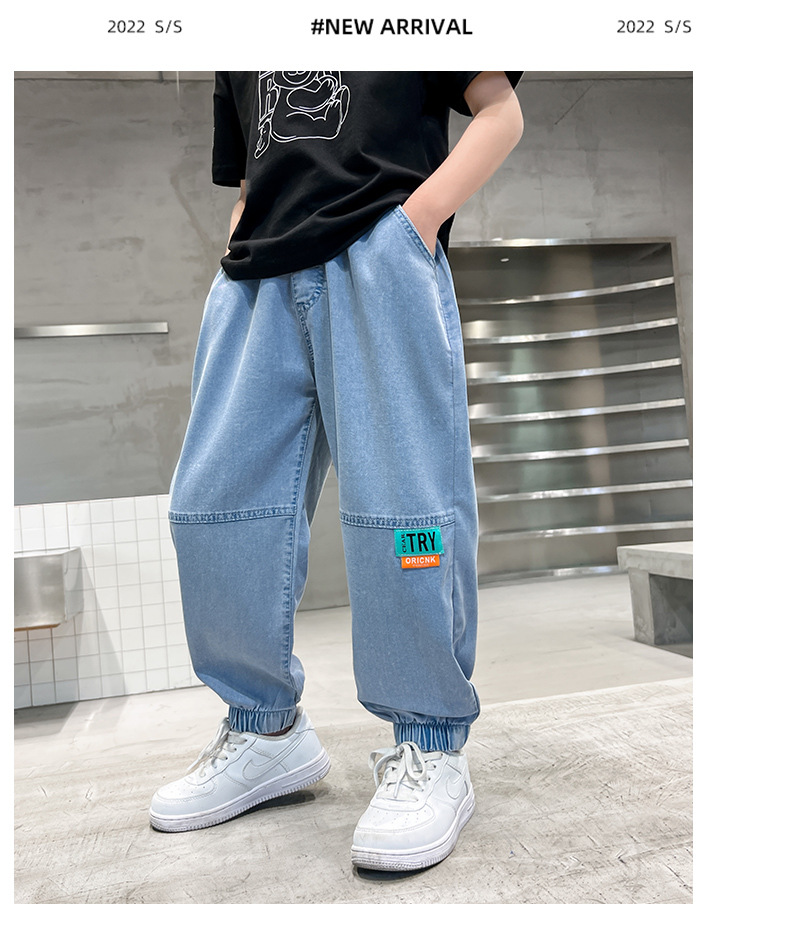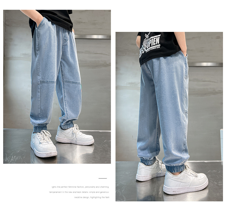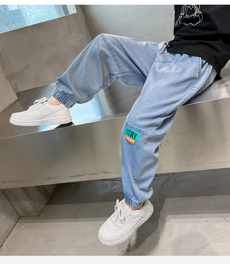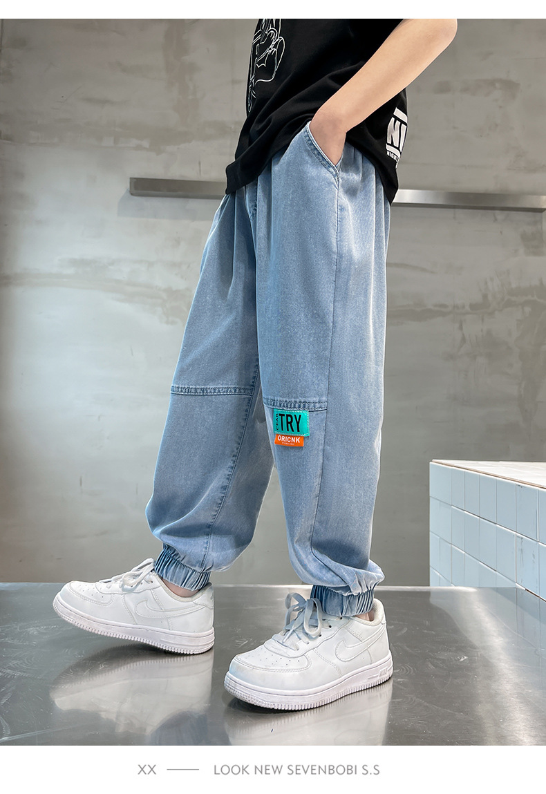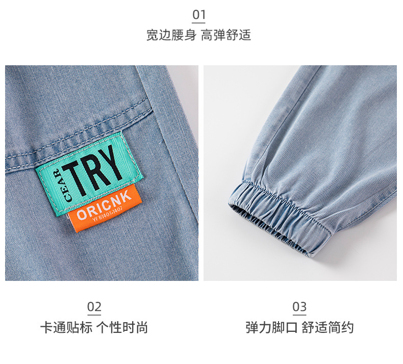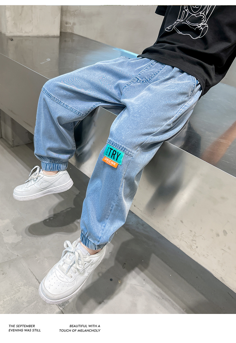 남아용 바지 여름 얇은 텐셀 청바지 한국식 중대형 아동 모기 방지 바지 다용도 아동 청바지 트렌디 브랜드