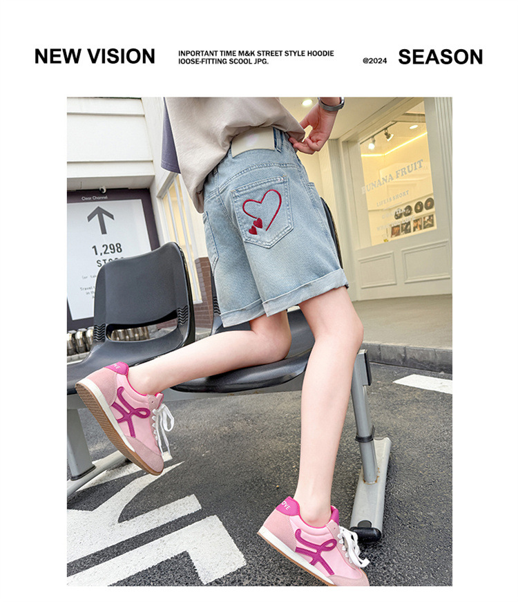 소녀의 사랑 자수 데님 반바지 여름 2025 새로운 서양식 어린이 여름 얇은 유행 바지스토어 가기