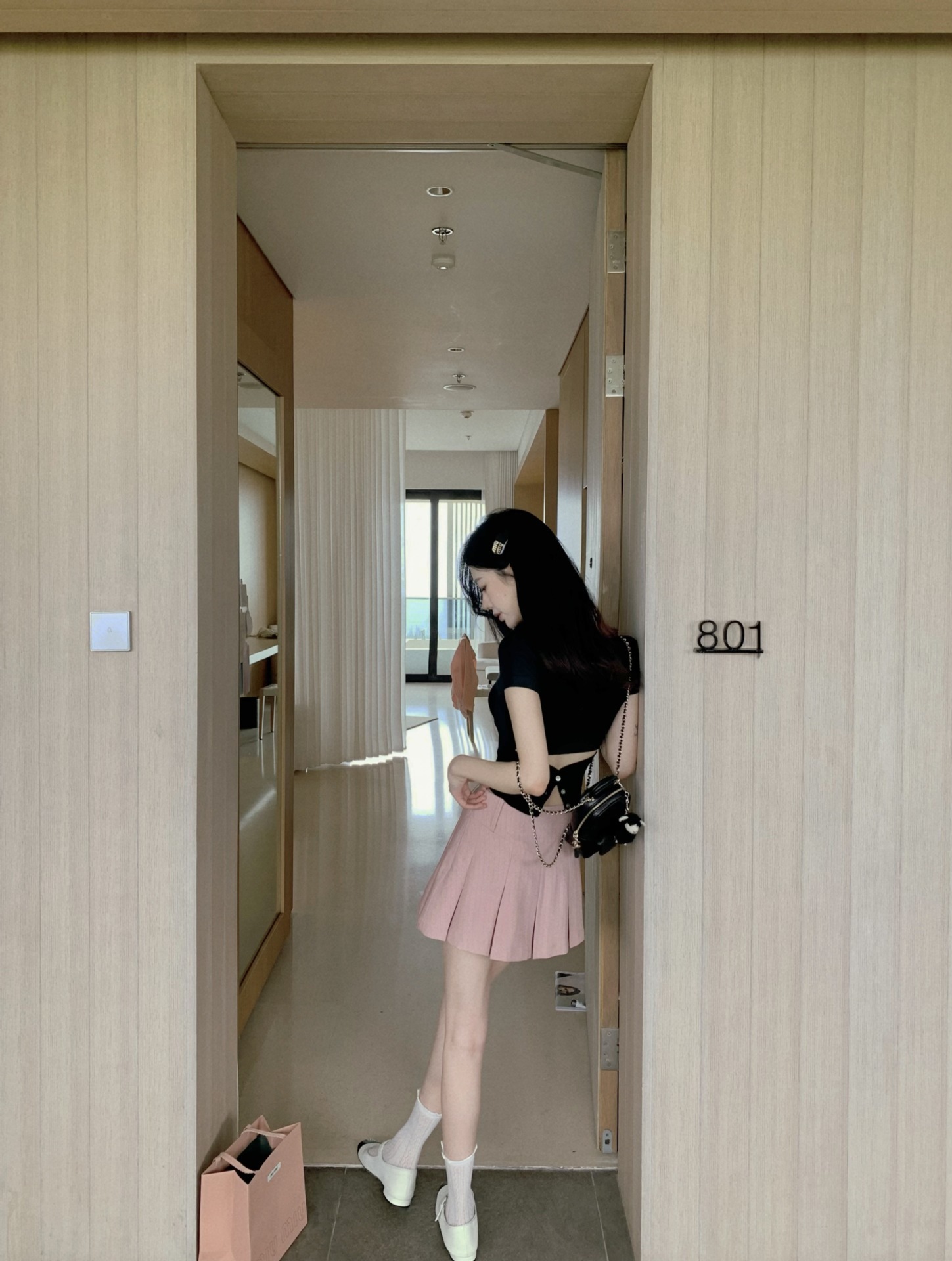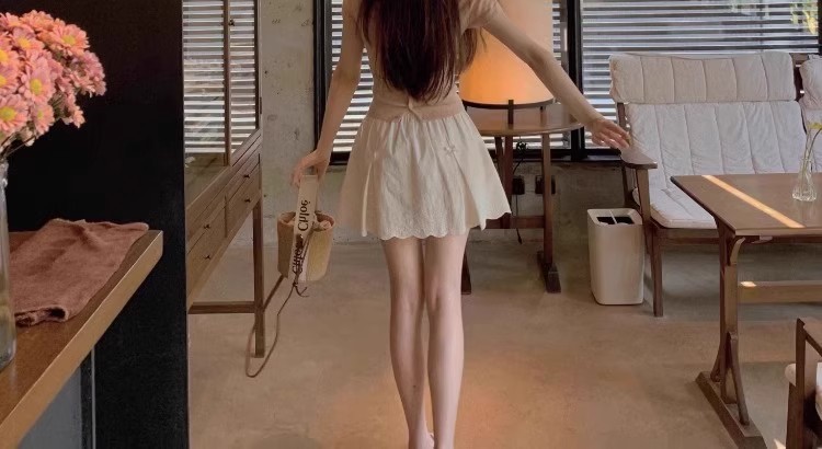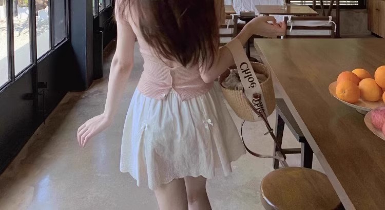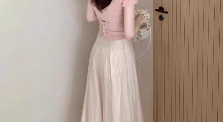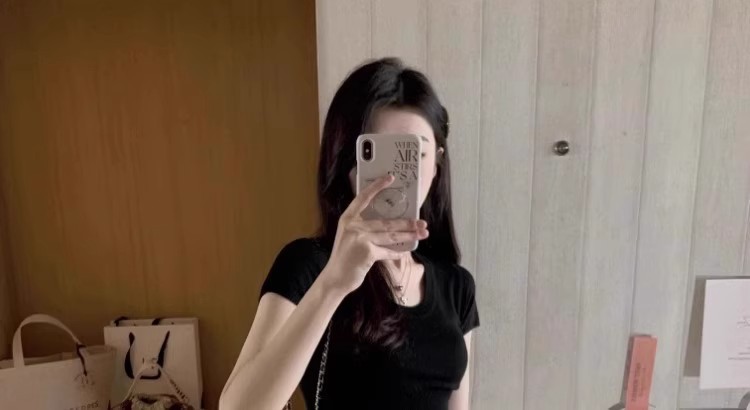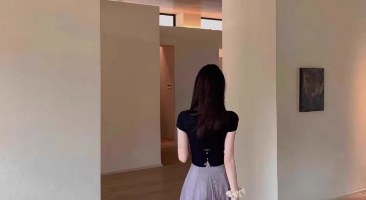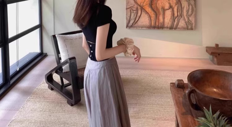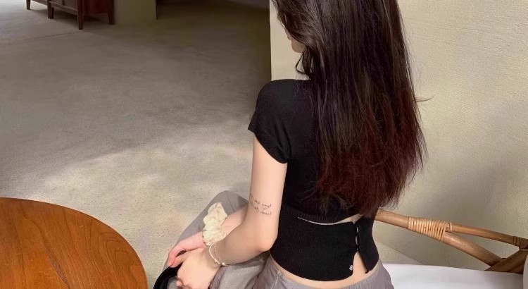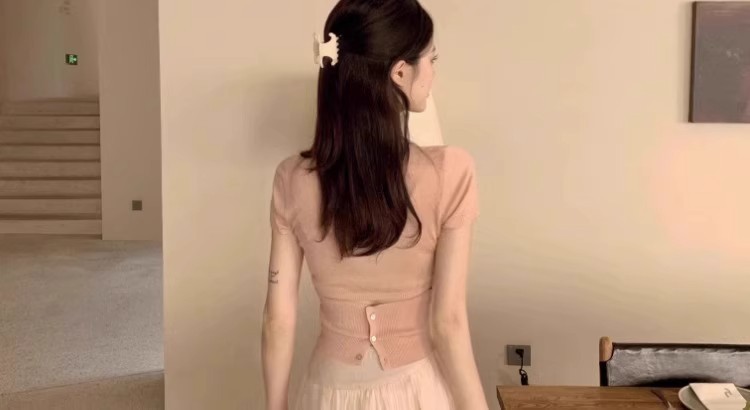 2025蓝色针织露背修身正肩短袖女t恤夏季别致甜辣很仙的短款上衣