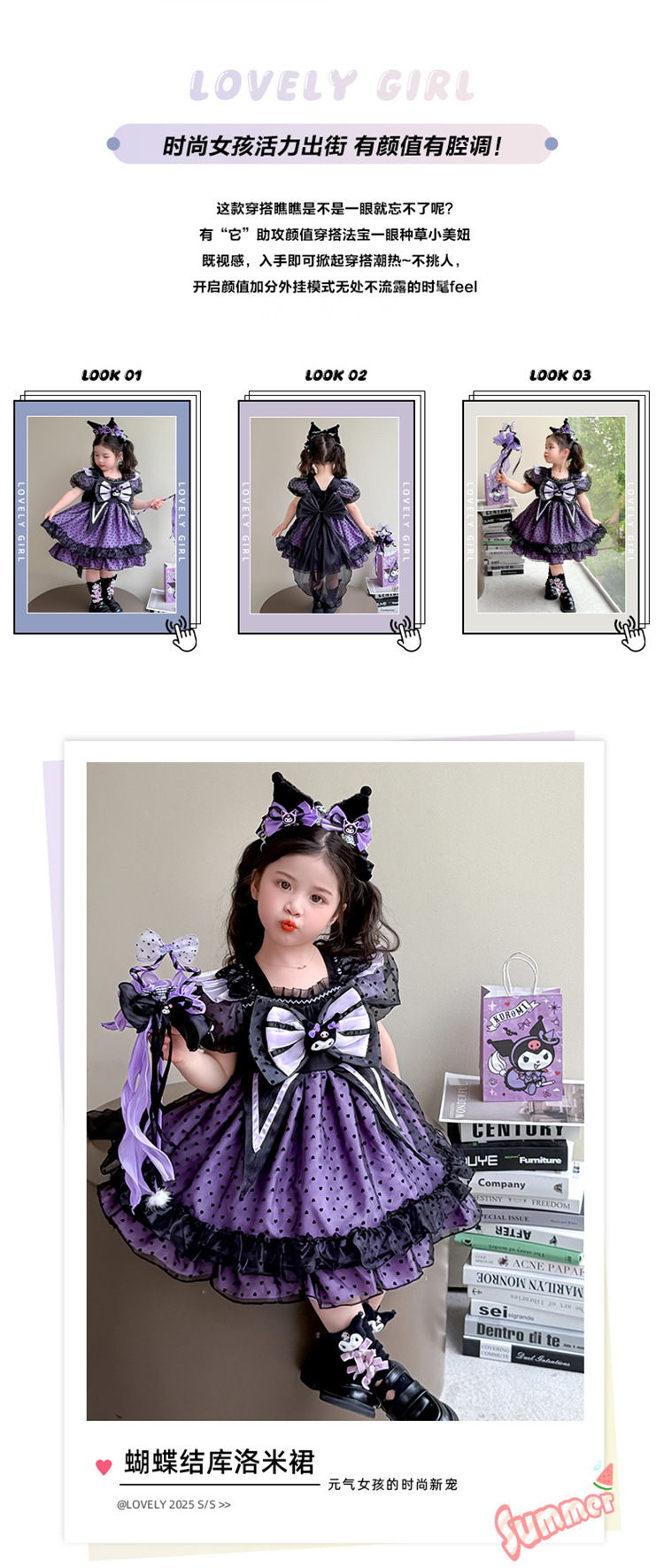 여자 공주 드레스 여름 2025 새로운 쿠로미 서스펜더 스커트 어린 소녀 생일 드레스 로리타 드레스스토어 가기