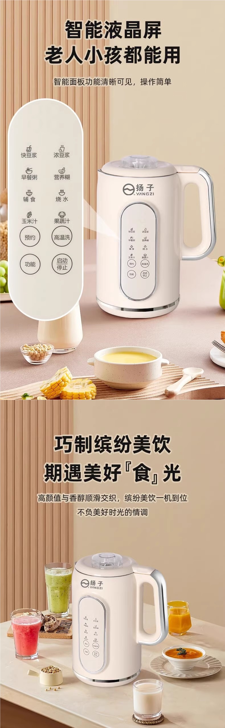양지 벽 깨는 기계 새로운 가정용 다기능 음소거 슬래그가없는 자동 미니 지능형 비 끓는 콩 우유 기계