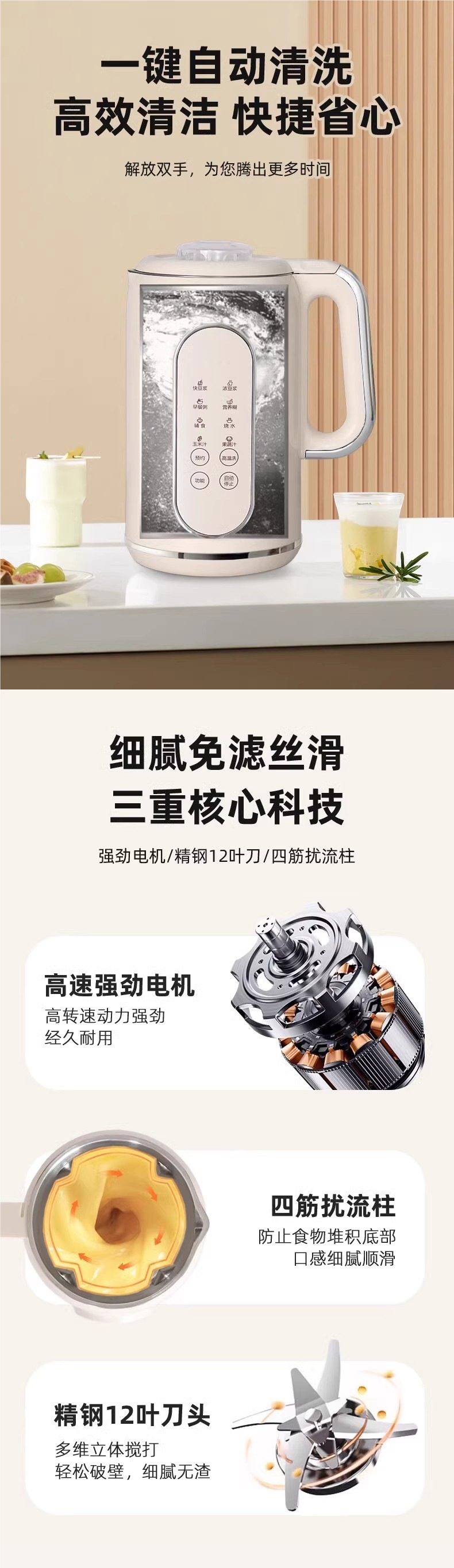 • 플래그십 - 새로운 업그레이드 - 골든 - 1200ML [12날 스테인레스 스틸 칼날 + 12H 스마트 예약 + 원클릭 청소