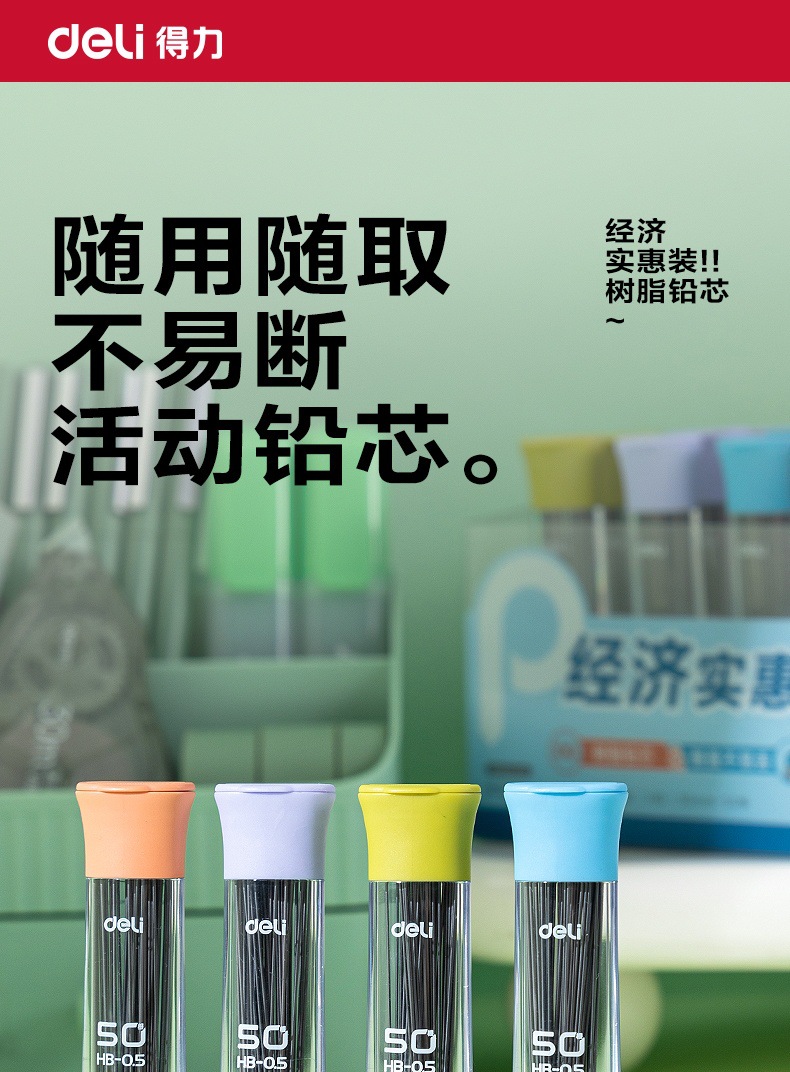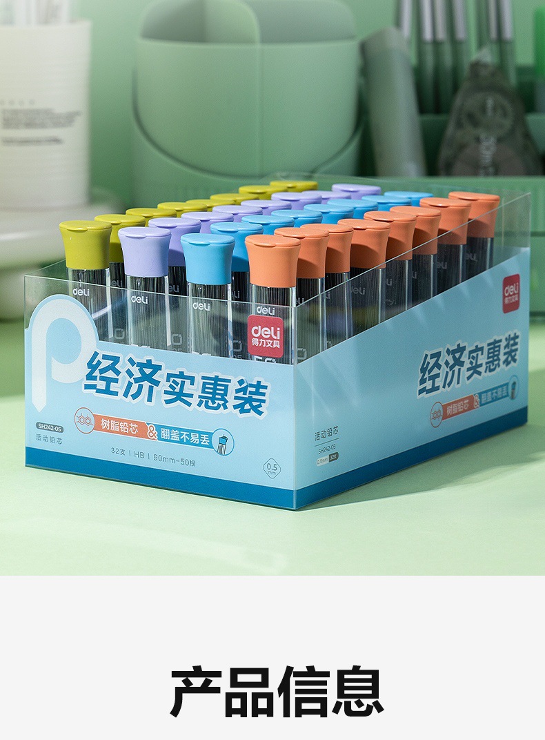 델리 SH242 경제적이고 저렴한 리드 HB0.5 0.7mm 활성 펜 리드 자동 연필 리필