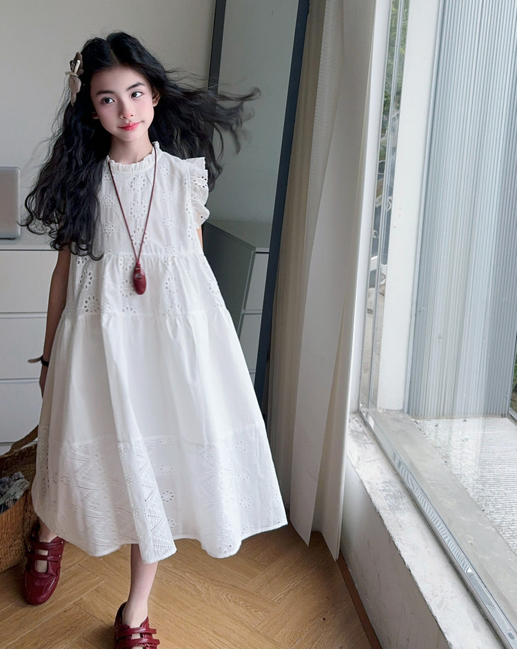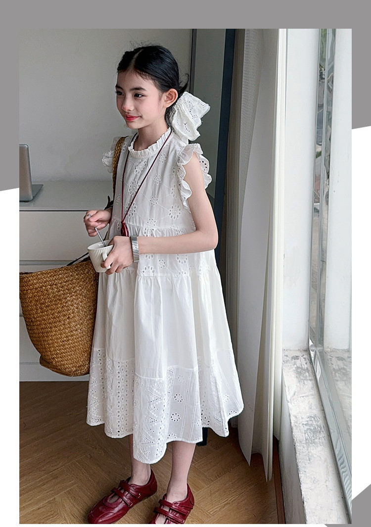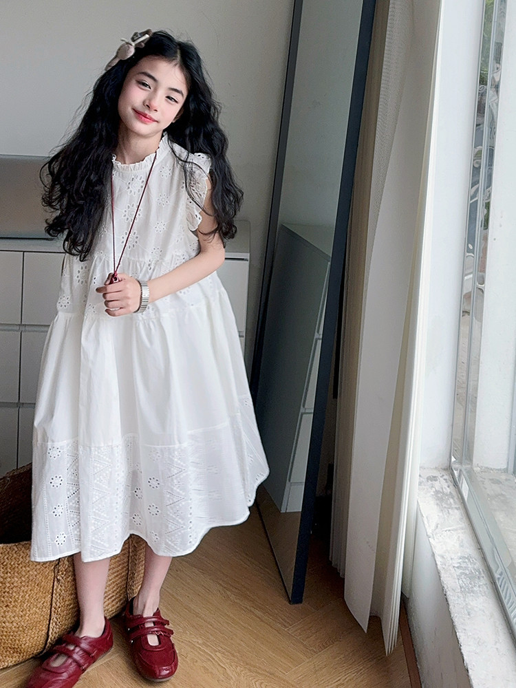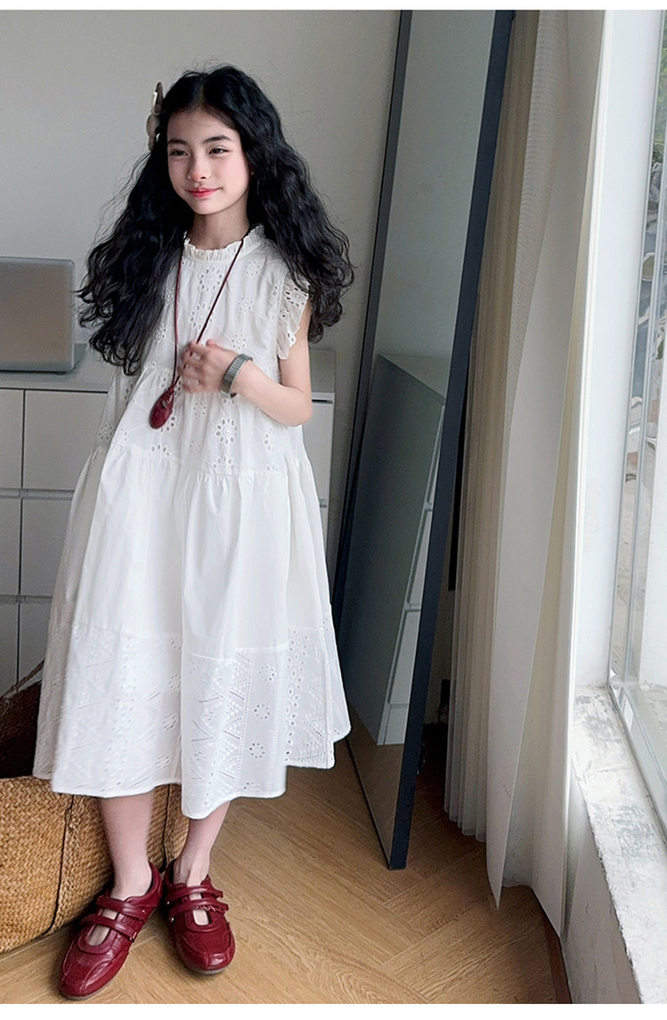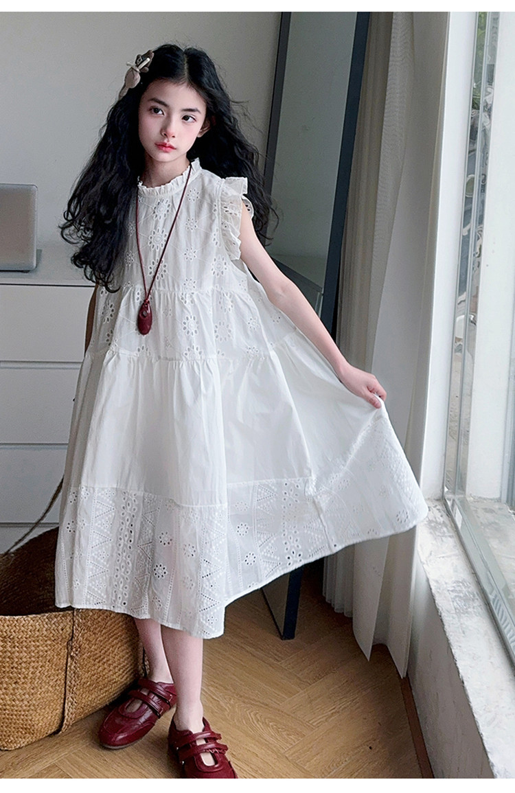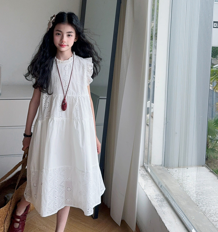 소녀 원피스 여름 2025 새로운 어린이 서양 스타일 달콤한 공주 원피스 큰 아이 소녀 조끼 치마