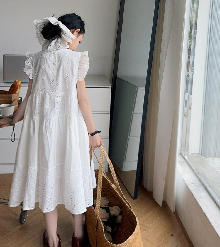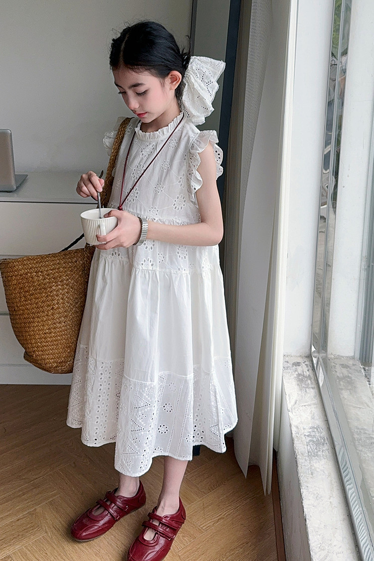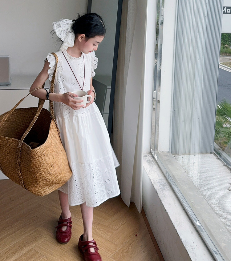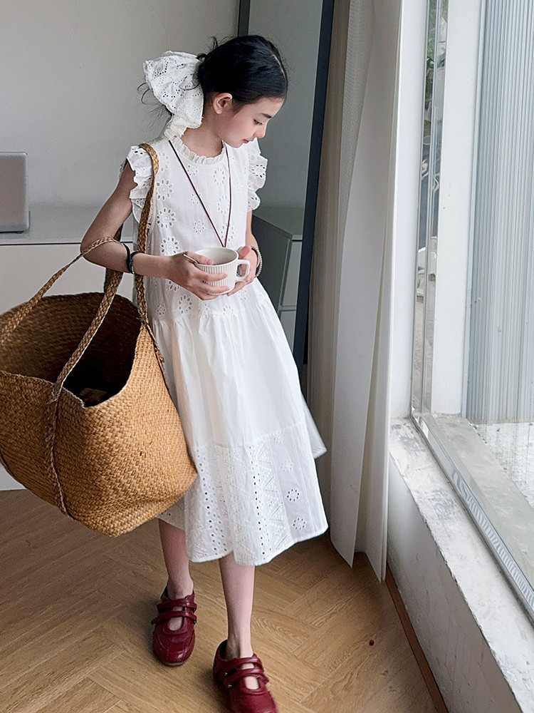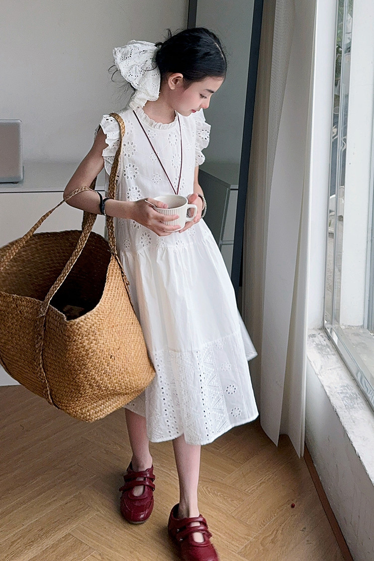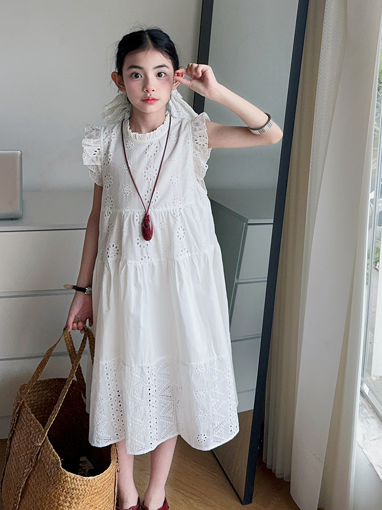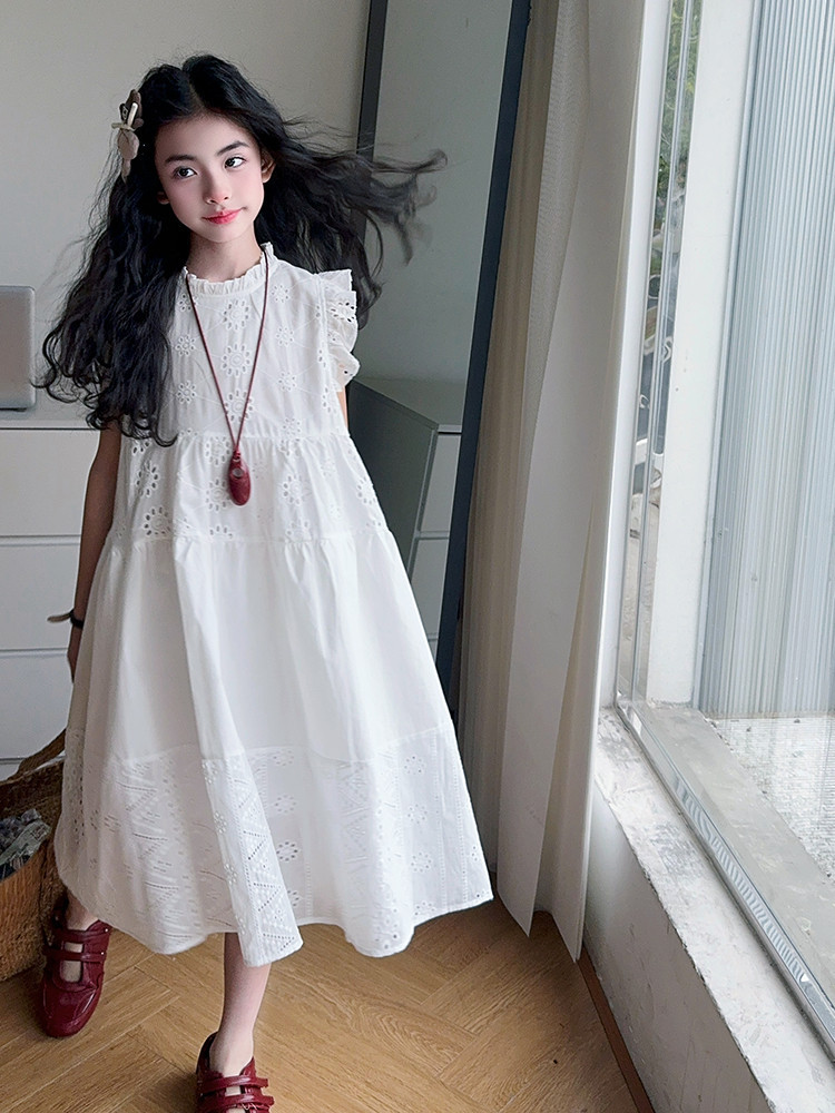소녀 원피스 여름 2025 새로운 어린이 서양 스타일 달콤한 공주 원피스 큰 아이 소녀 조끼 치마