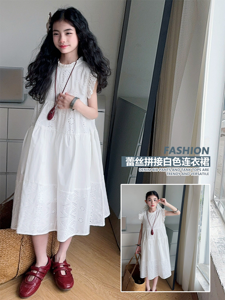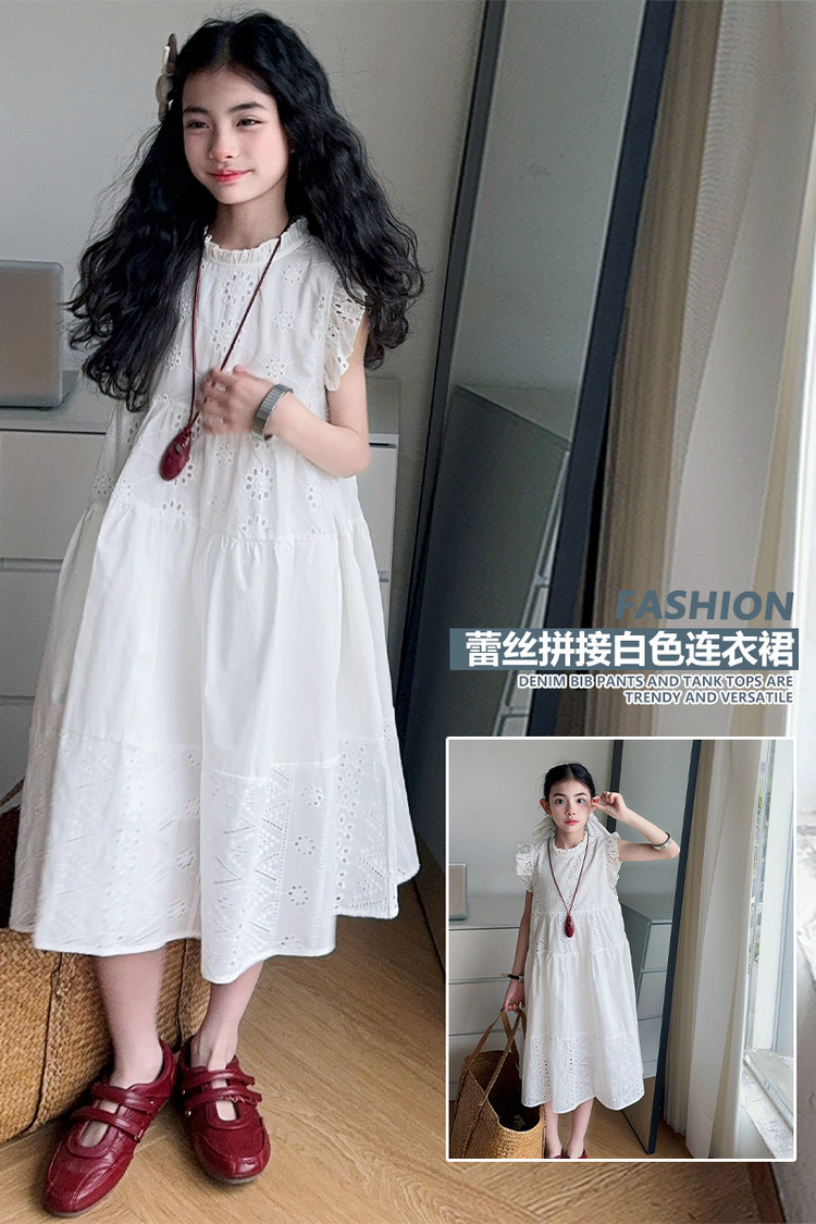 소녀 원피스 여름 2025 새로운 어린이 서양 스타일 달콤한 공주 원피스 큰 아이 소녀 조끼 치마스토어 가기