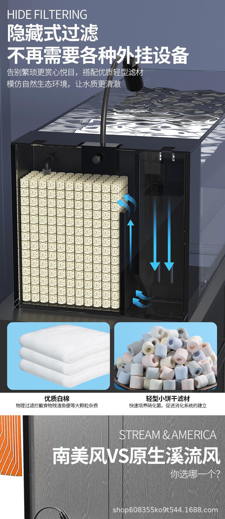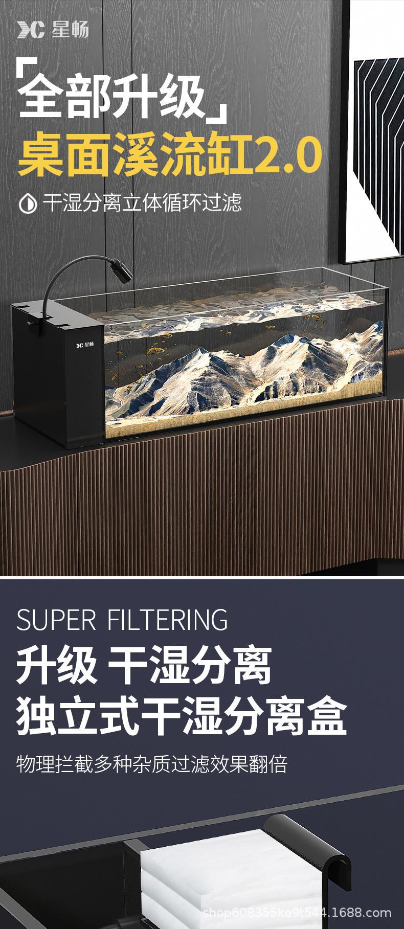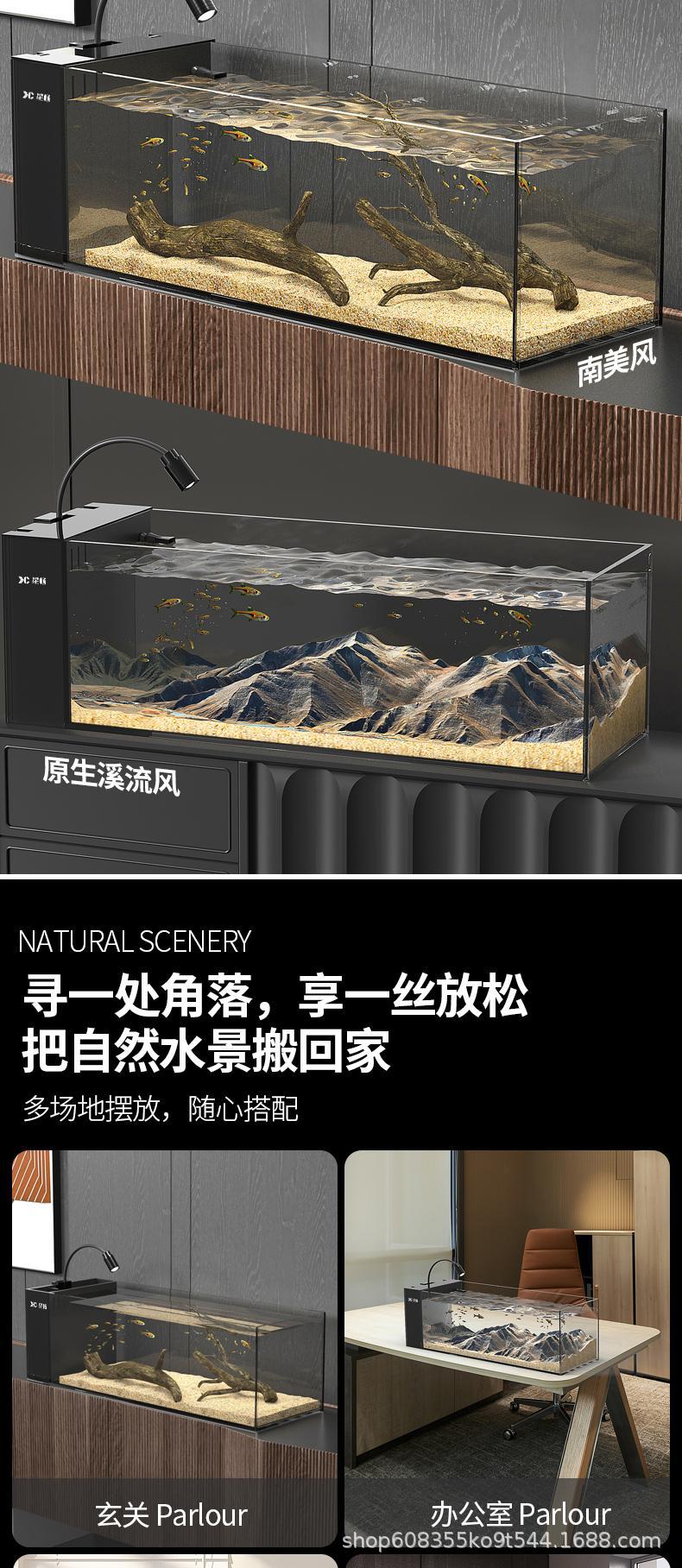 2025 새로운 스타일의 어항 일체형 거실 골드 크리스탈 초백색 측면 필터 소형 유리 조경 스타 샹 스트림 탱크 풀 세트스토어 가기