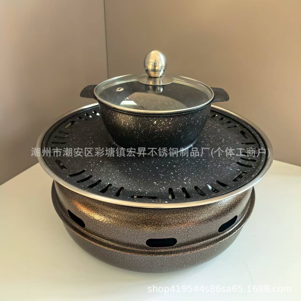 친환경 오일 바비큐 그릴 가정용 알루미늄 그릴 팬 식물성 기름 상업용 바비큐 실내 원형 그릴 연료통스토어 가기