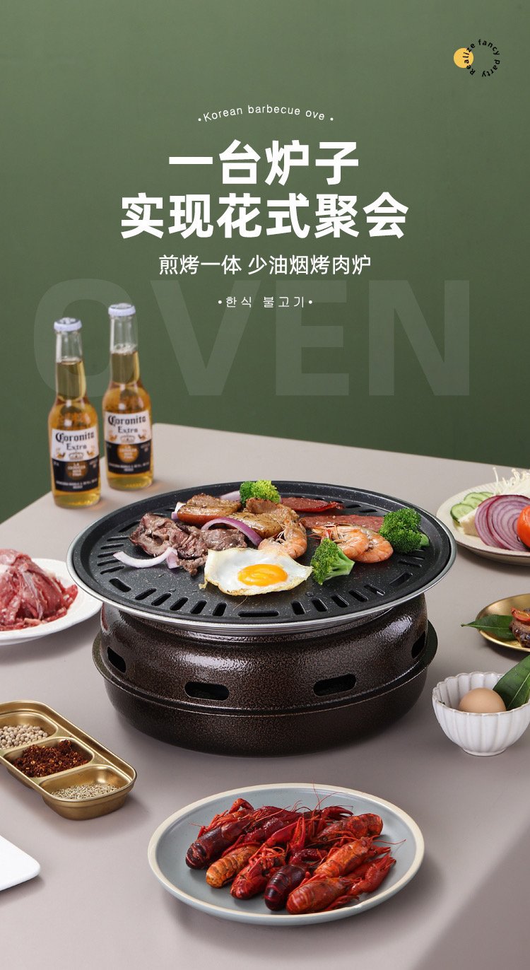 친환경 오일 바비큐 그릴 가정용 알루미늄 그릴 팬 식물성 기름 상업용 바비큐 실내 원형 그릴 연료통