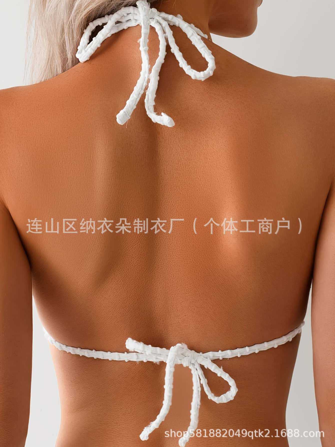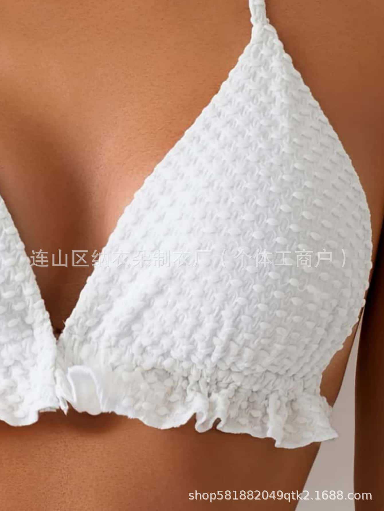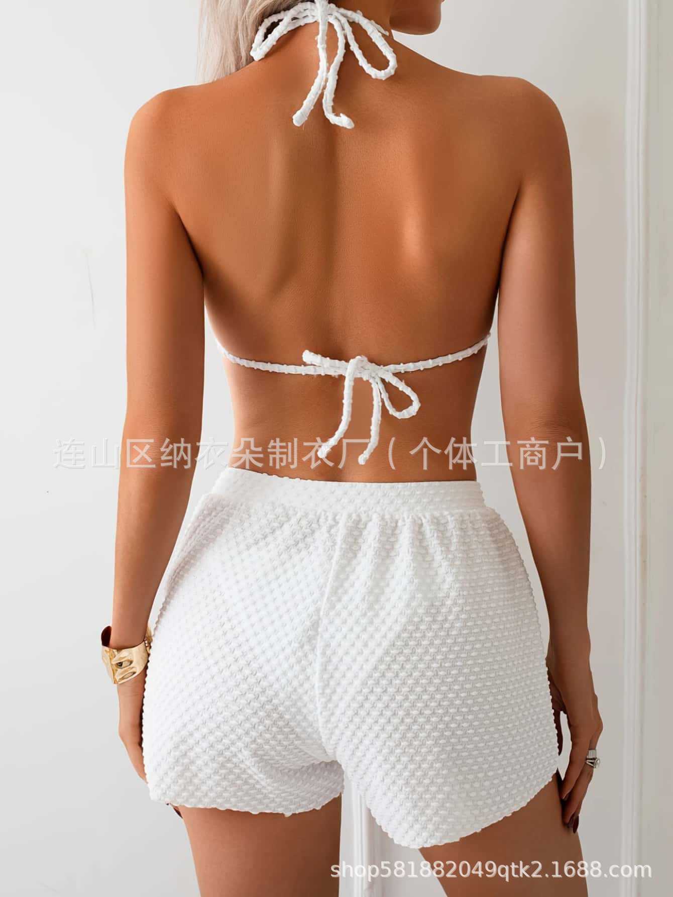 크로스보더 신상 유럽풍 화이트 홀터넥 비키니 3피스 세트 고급 수영복 섹시한 분리형 수영복 여성용