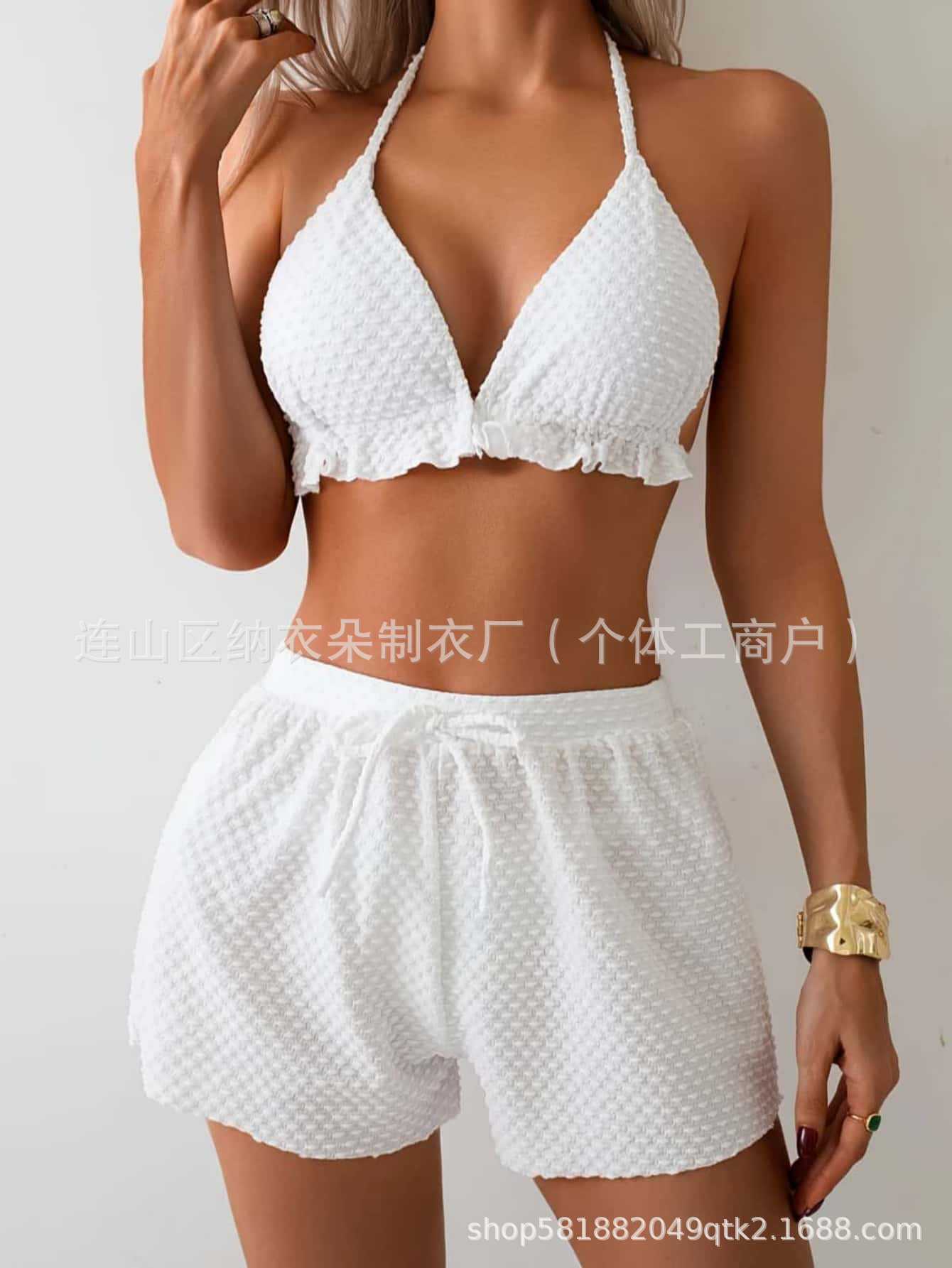 크로스보더 신상 유럽풍 화이트 홀터넥 비키니 3피스 세트 고급 수영복 섹시한 분리형 수영복 여성용스토어 가기
