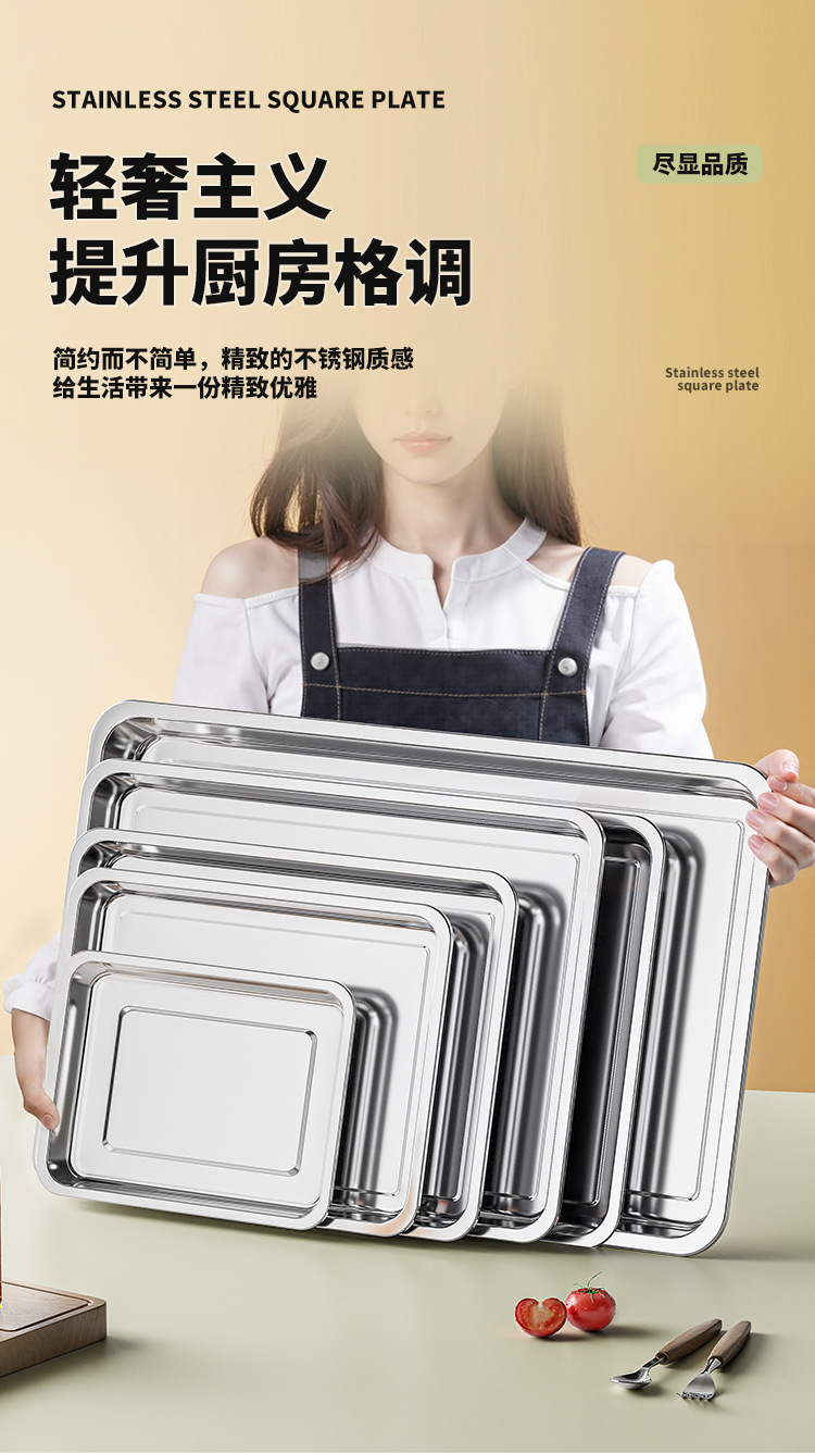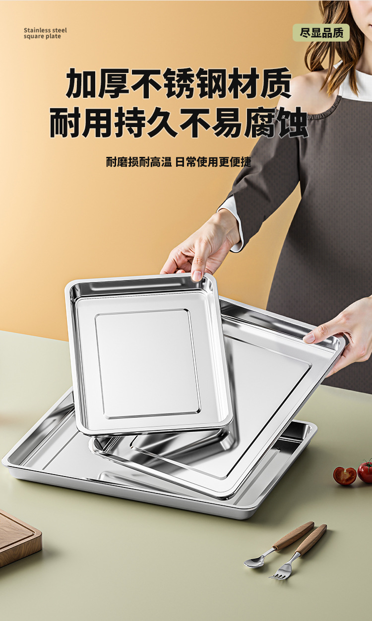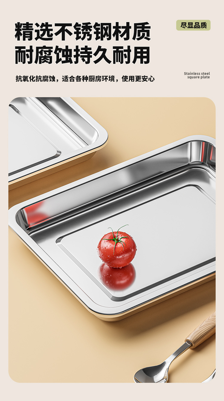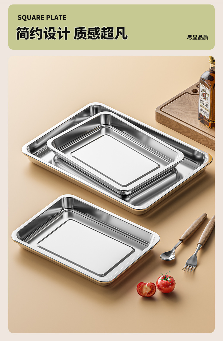 두꺼운 스테인레스 스틸 사각 접시, 직사각형 트레이, 두꺼운 캔틴 찜 밥 접시, 야채 접시, 바베큐 접시, 생선 구이 접시, 사각 접시스토어 가기