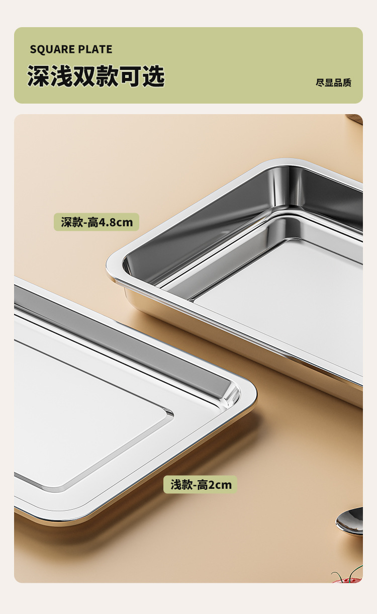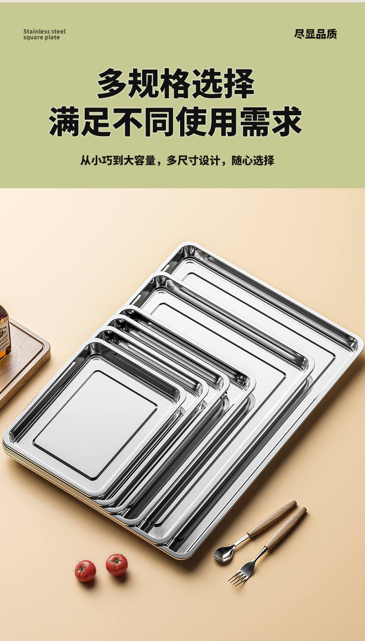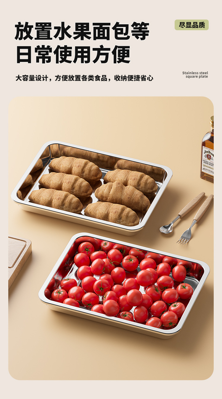 두꺼운 스테인레스 스틸 사각 접시, 직사각형 트레이, 두꺼운 캔틴 찜 밥 접시, 야채 접시, 바베큐 접시, 생선 구이 접시, 사각 접시스토어 가기