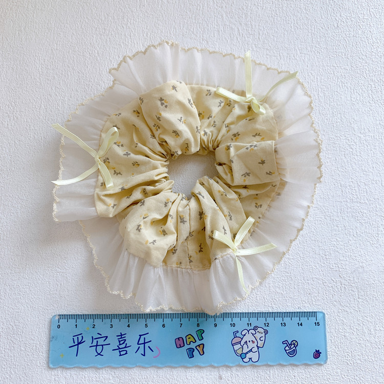 우유 노란색 목가적 인 스타일 꽃 활 큰 장내 머리 반지 달콤한 소녀 넥타이 낮은 포니 테일 볼 헤어 로프 헤드웨어스토어 가기