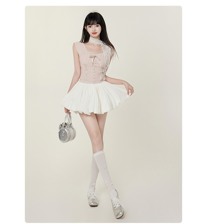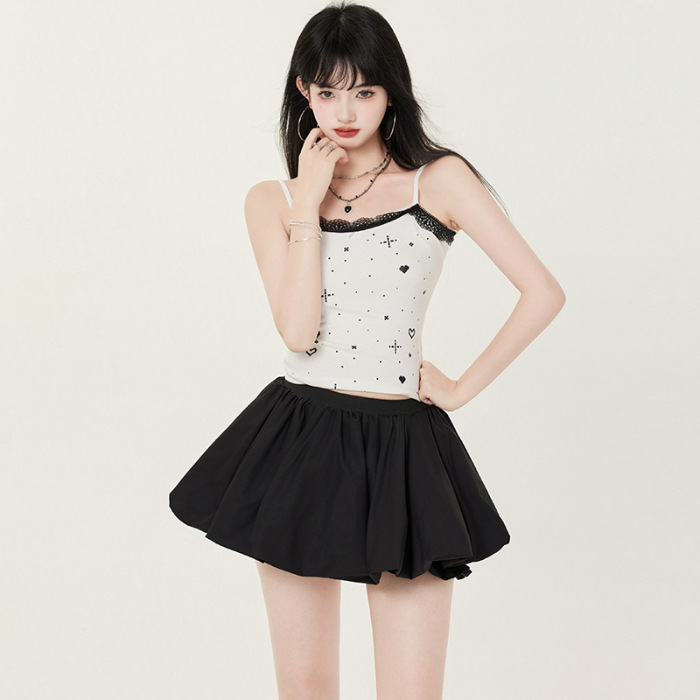 [폭발 버드 쇼트 스커트] 안전 바지 안티 러닝 화이트와 블랙 온라인 인기 푹신한 스커트 하이 웨이스트 슬리밍 여성용 미니 스커트