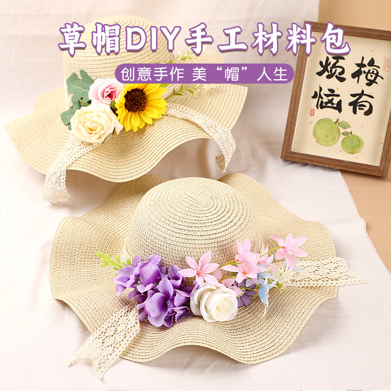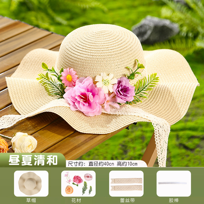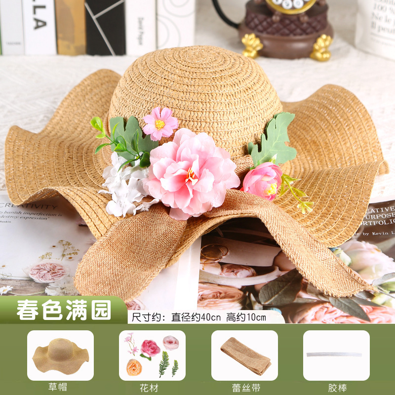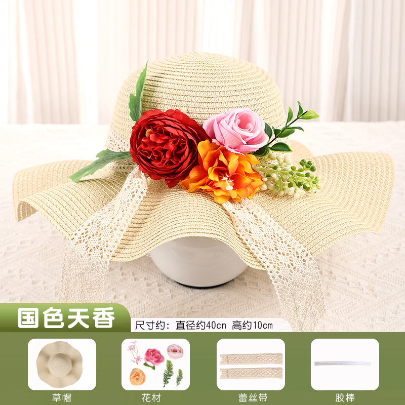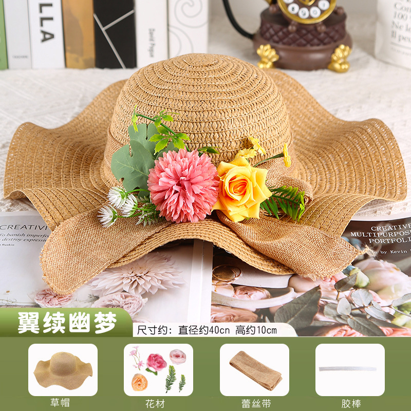 여성의 날 꽃 모자 수제 소재 가방 성인 차양 실크 꽃 장식 프랑스 모자 워밍업 활동