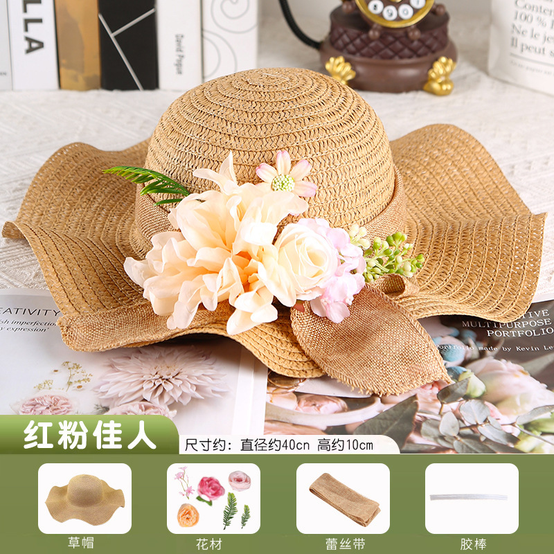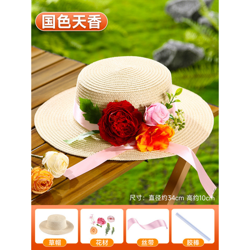 여성의 날 꽃 모자 수제 소재 가방 성인 차양 실크 꽃 장식 프랑스 모자 워밍업 활동스토어 가기