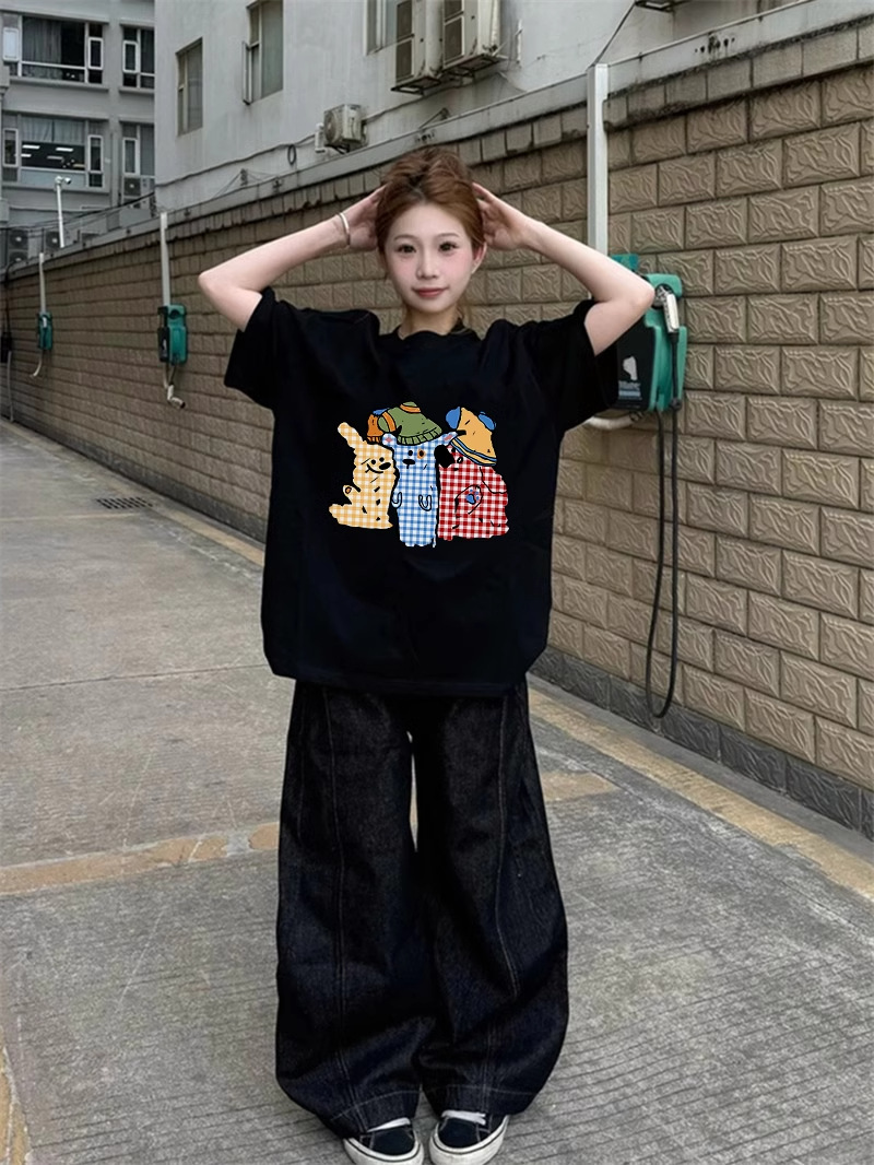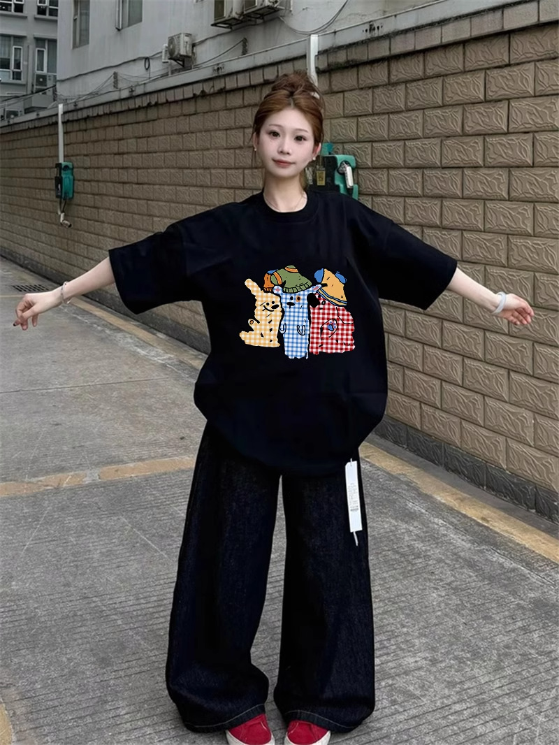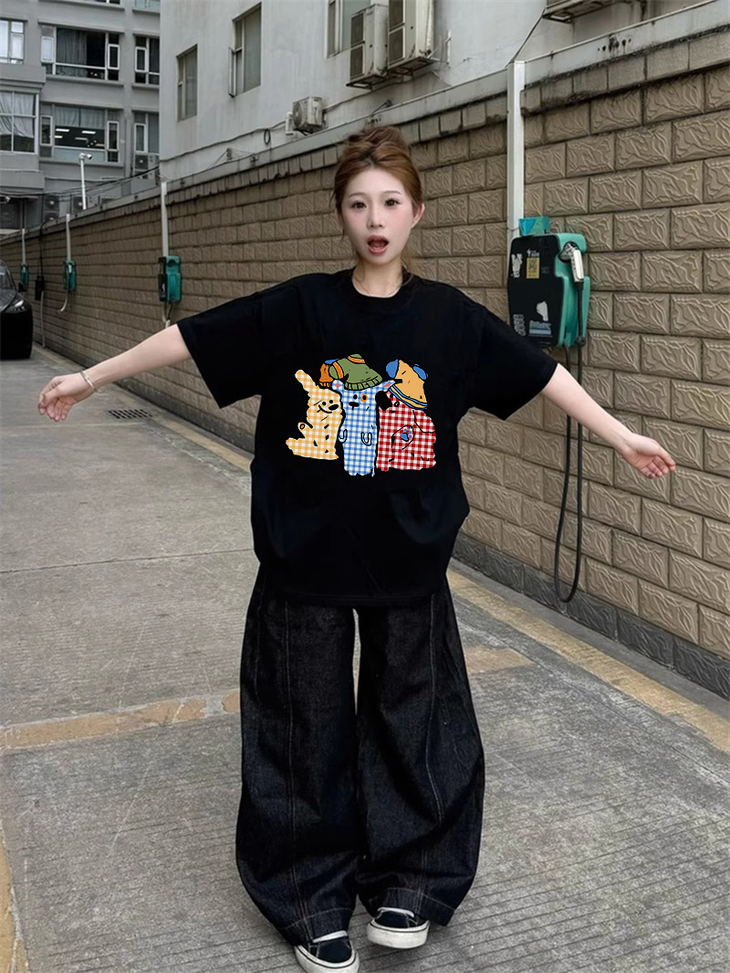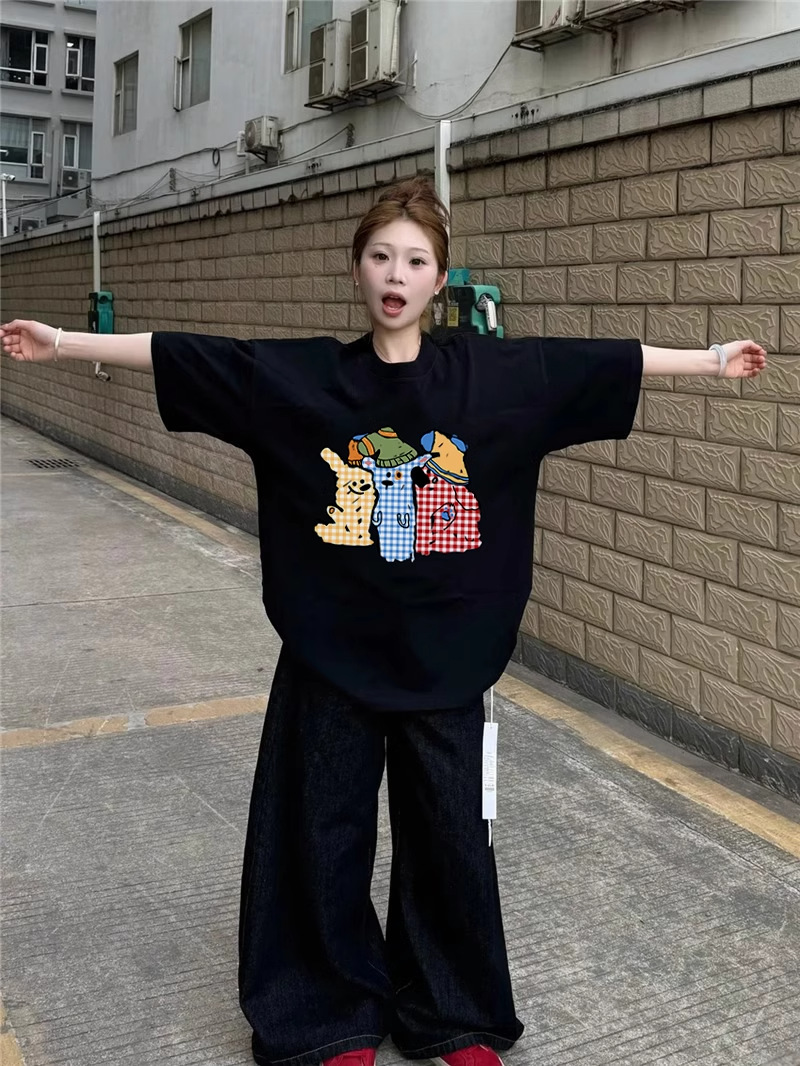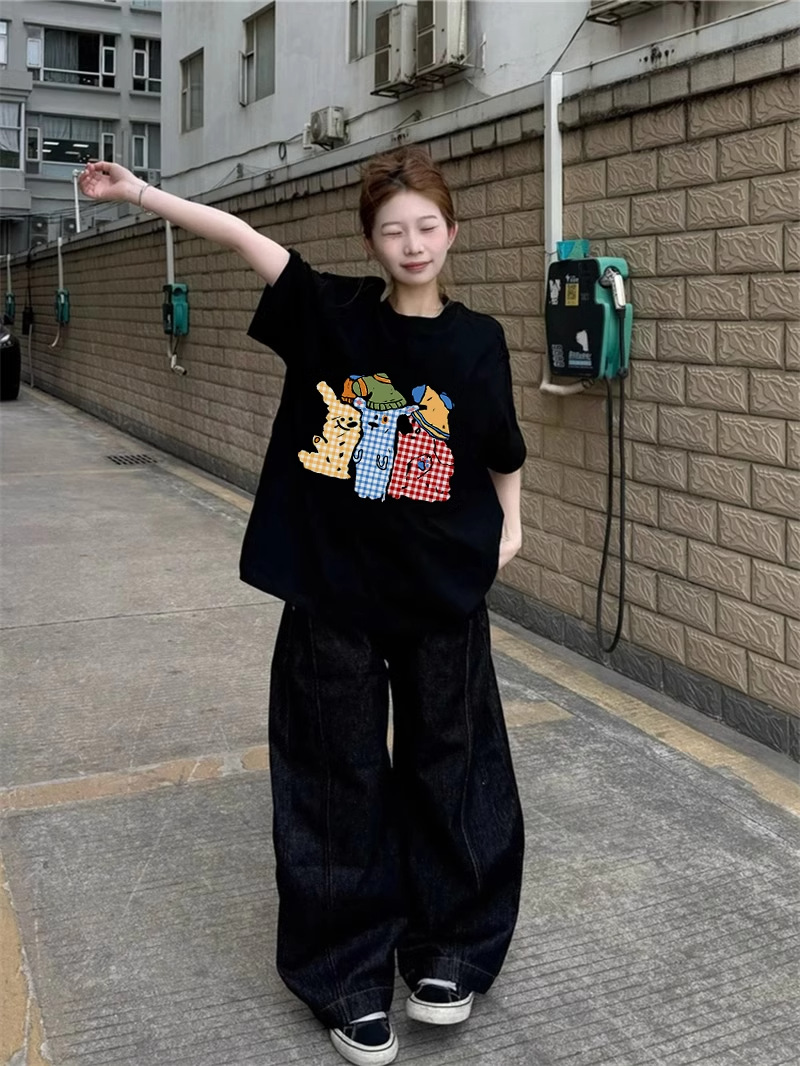아메리칸 스타일 코튼 블랙 반팔 티셔츠 여성 여름 새로운 디자인 센스 틈새 플러스 사이즈 반소매 통통녀 탑 트렌디스토어 가기