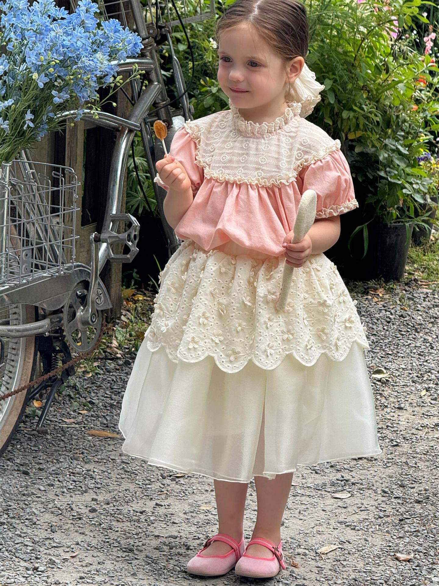 뾰족한 달걀 한국 스타일 아동복 2025 여름 신식 소녀 스커트 솔리드 컬러 레이스 메쉬 푹신한 스커트 공주 스커트