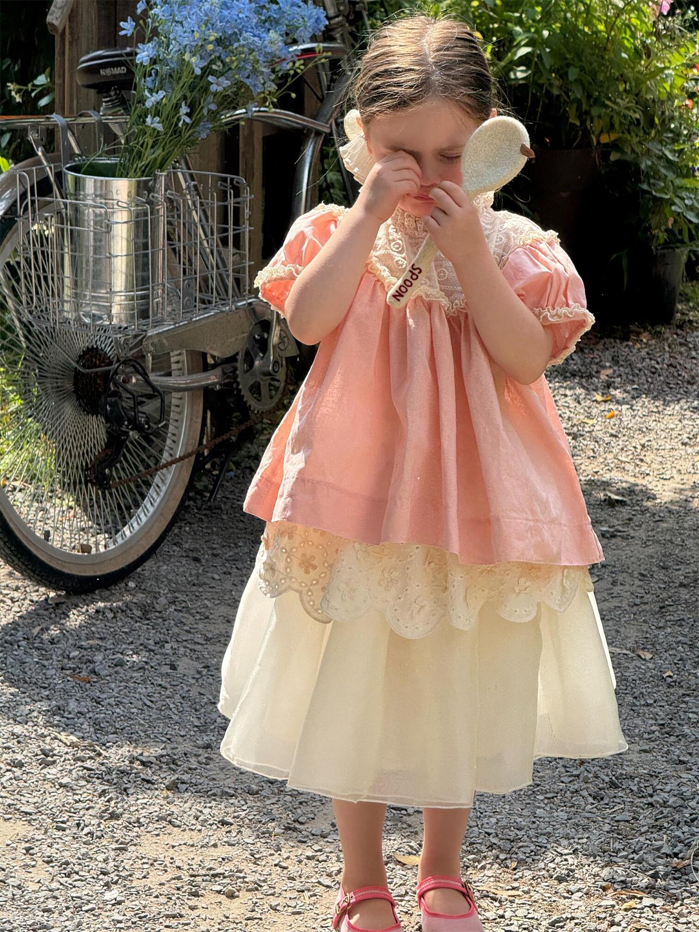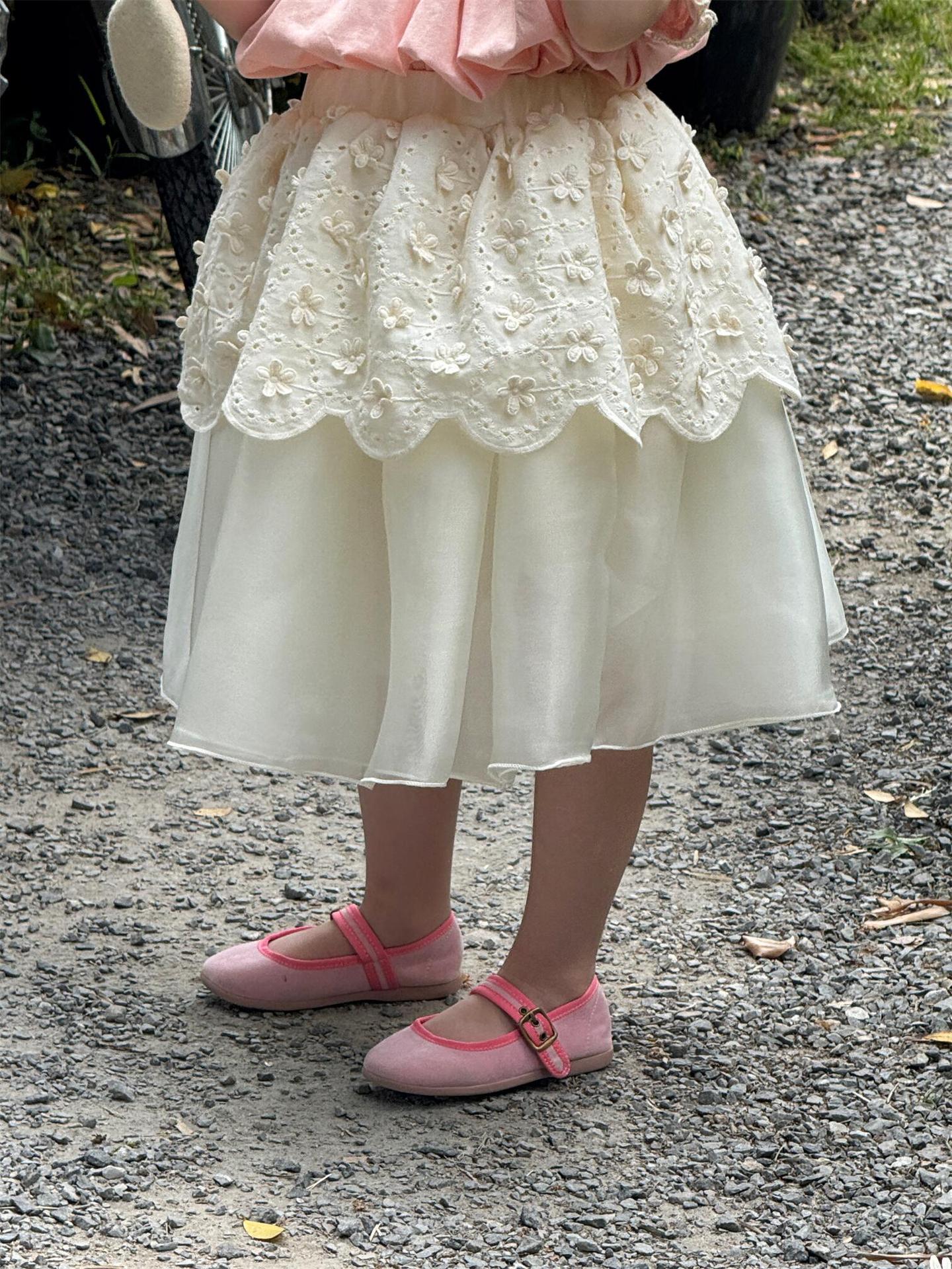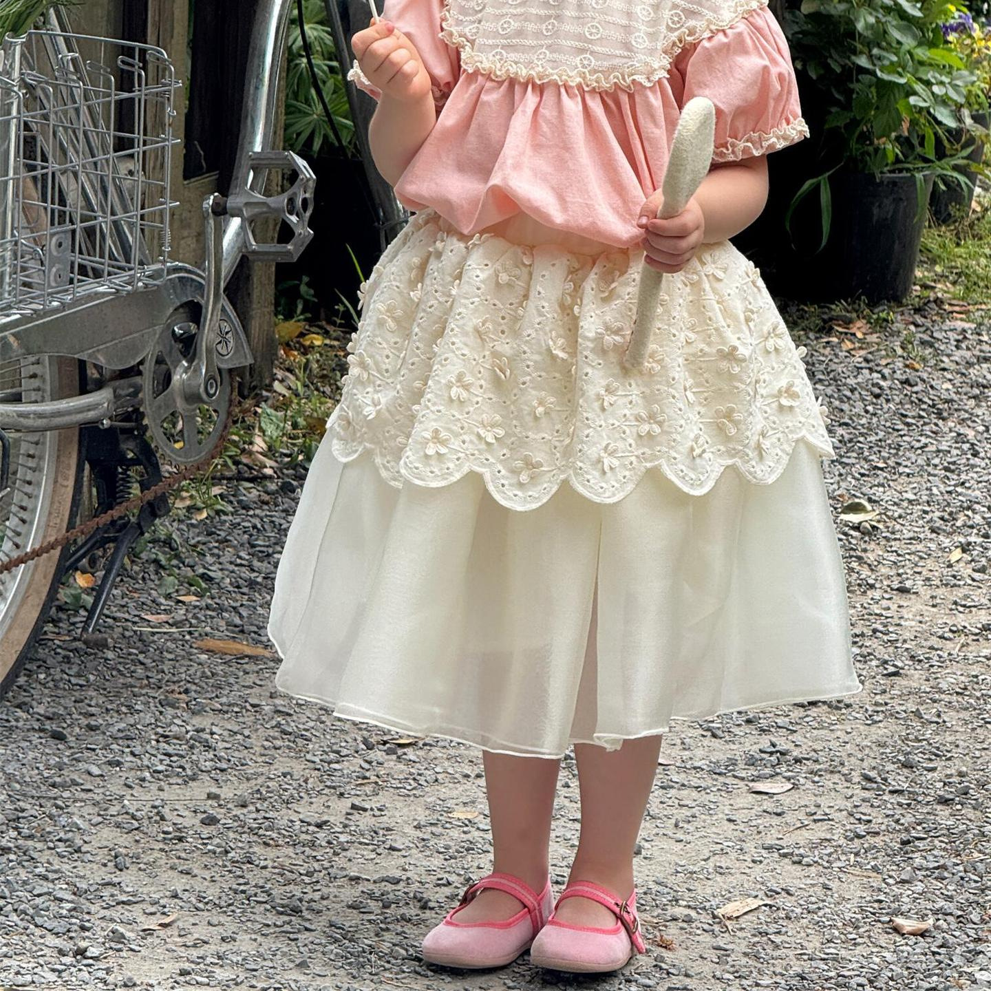 뾰족한 달걀 한국 스타일 아동복 2025 여름 신식 소녀 스커트 솔리드 컬러 레이스 메쉬 푹신한 스커트 공주 스커트스토어 가기