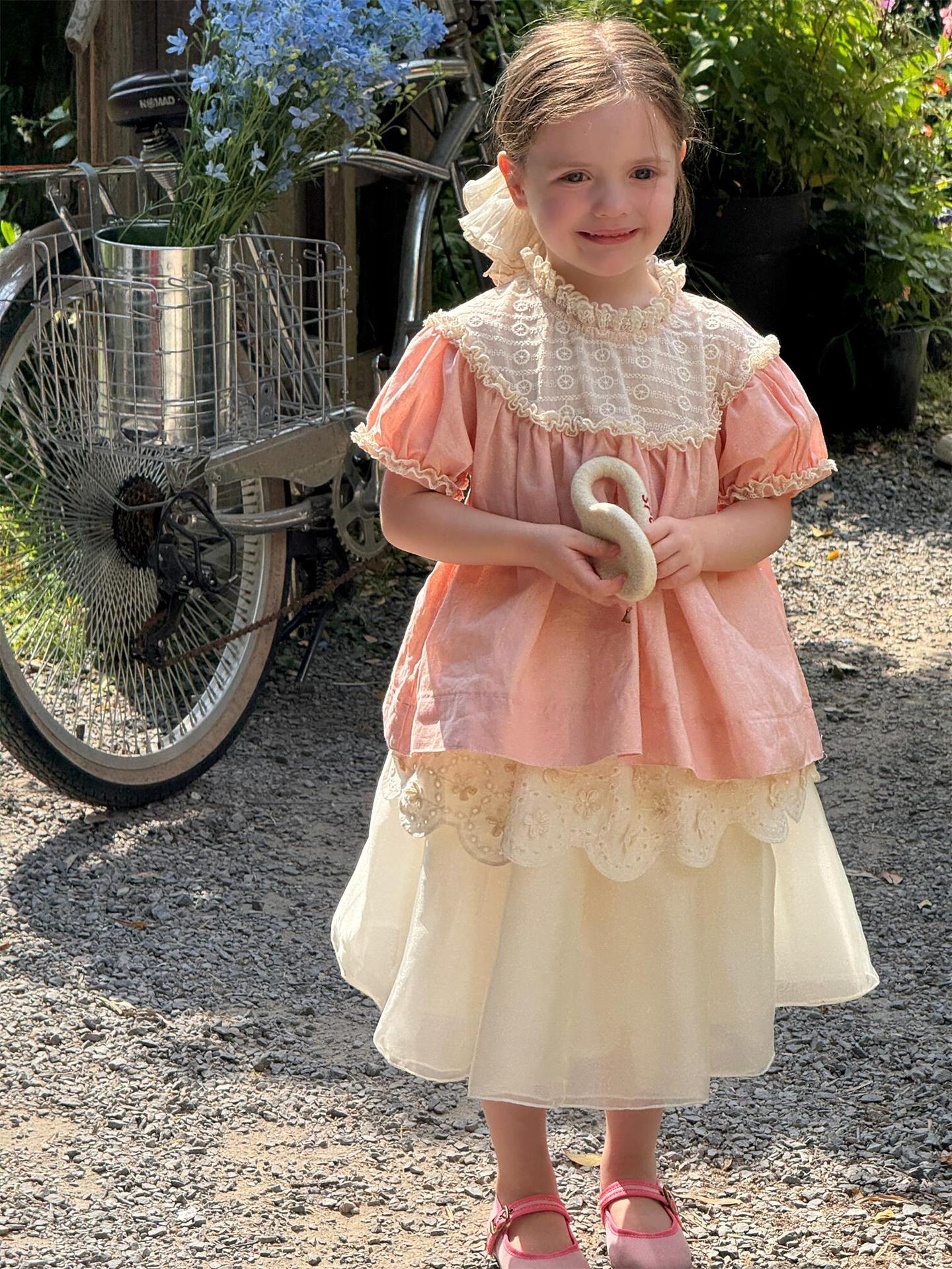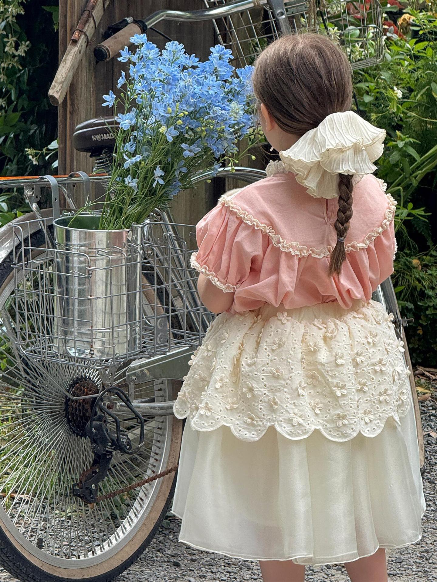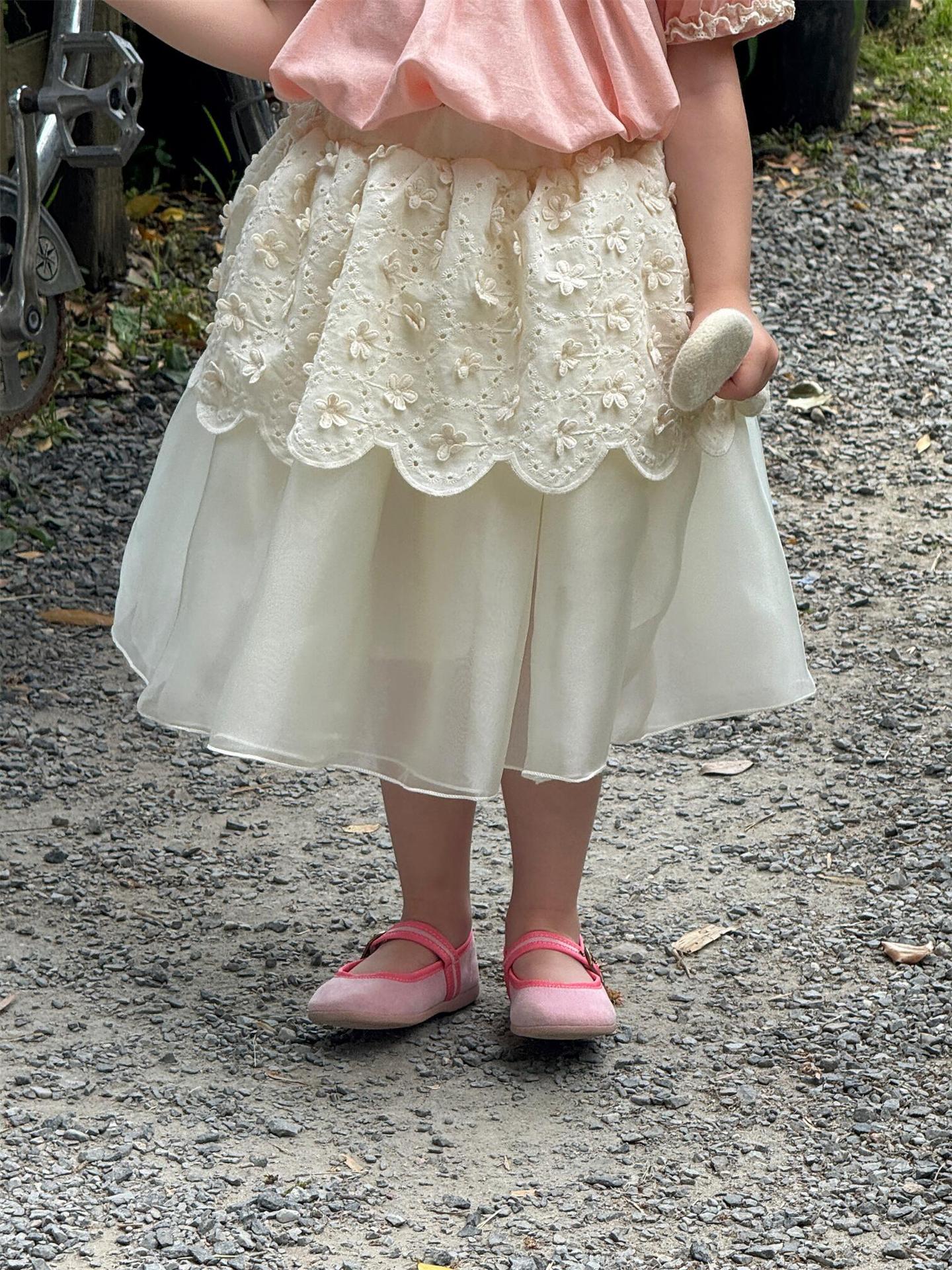 뾰족한 달걀 한국 스타일 아동복 2025 여름 신식 소녀 스커트 솔리드 컬러 레이스 메쉬 푹신한 스커트 공주 스커트스토어 가기