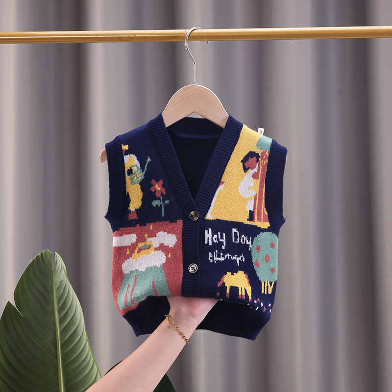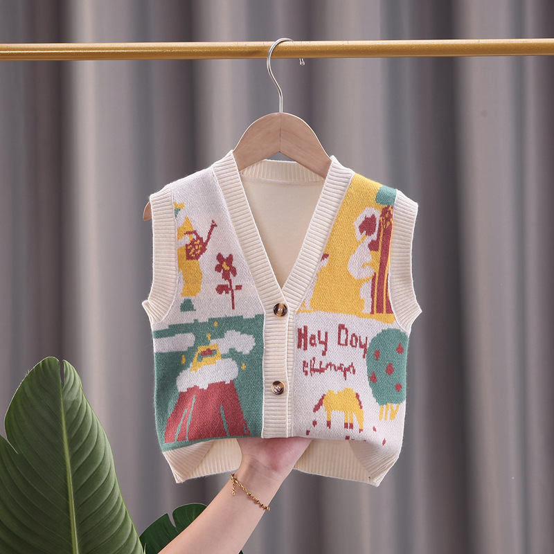 2025 새로운 가을 어린이 만화 양모 조끼 조끼 스웨터 아기 아기 어린이 의류 소년과 소녀 유행스토어 가기