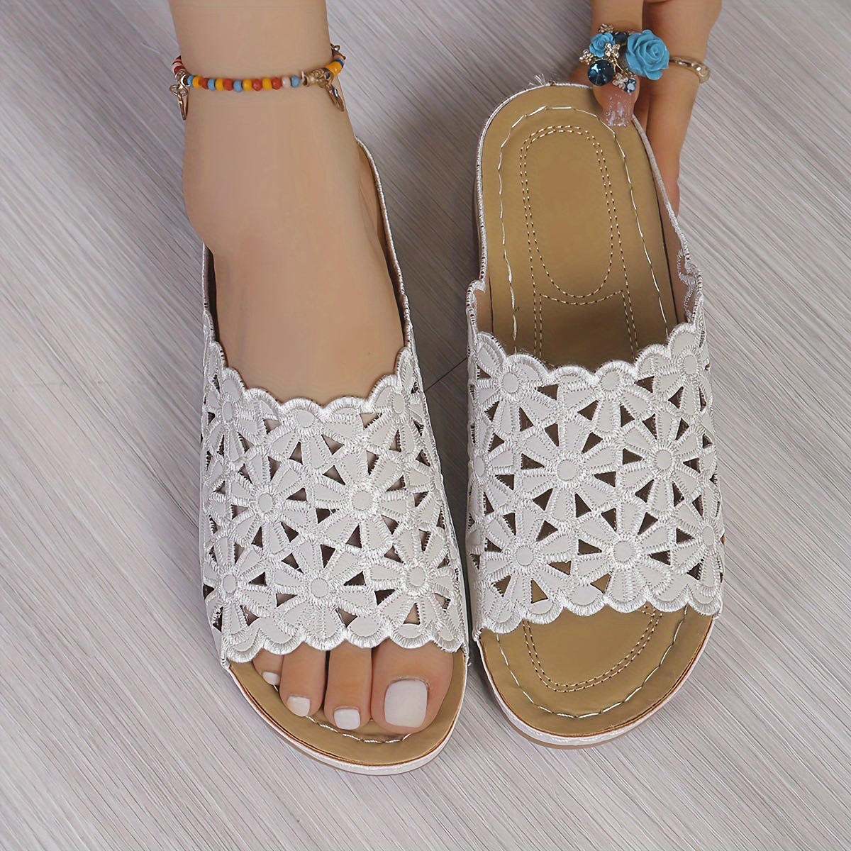 편안한 여성용 웨지 힐 샌들, 꽃무늬