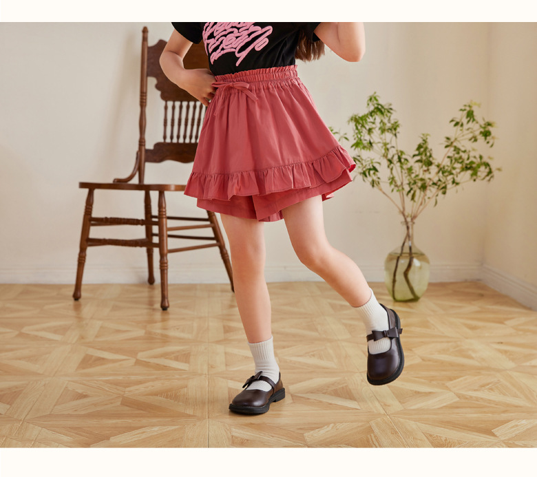 2024 여름 새로운 여자 치마 허리 레이스 디자인 달콤한 공주 스타일 아기 치마 안전 바지