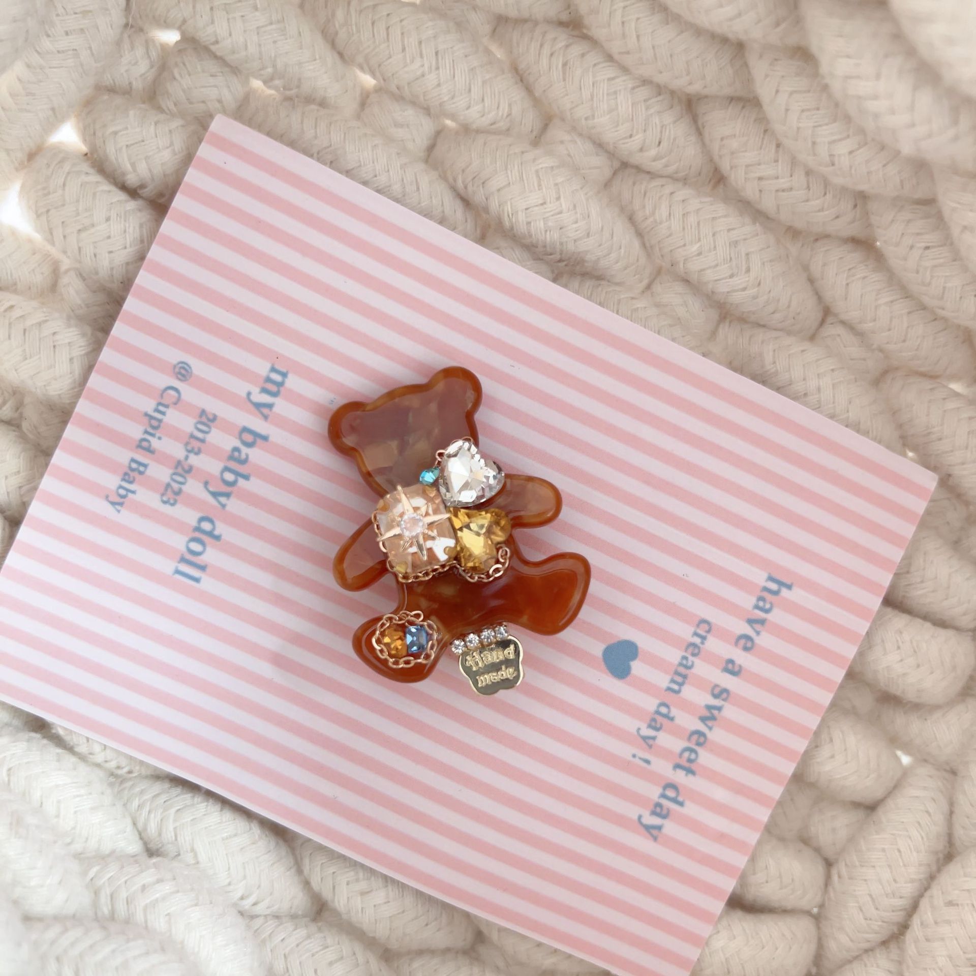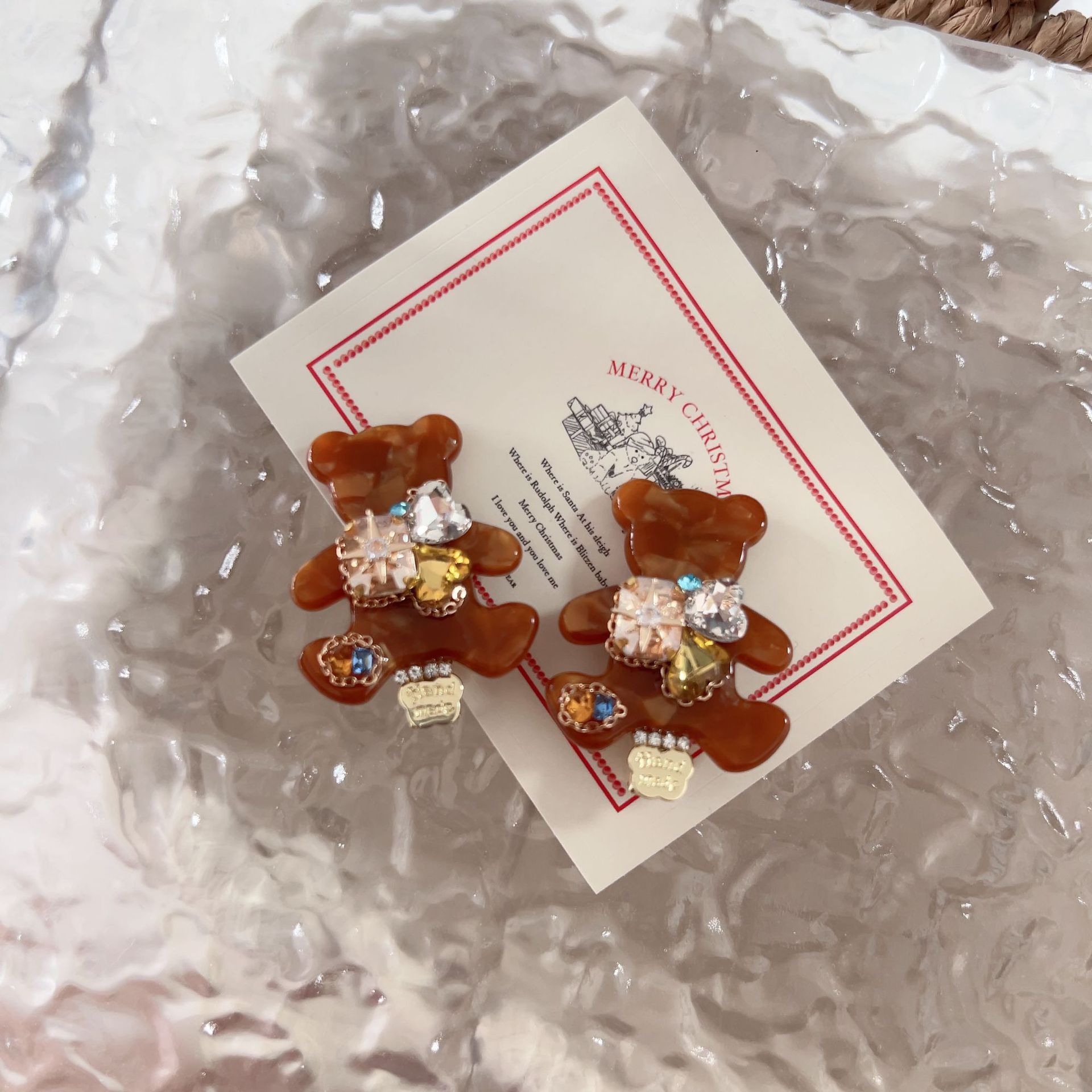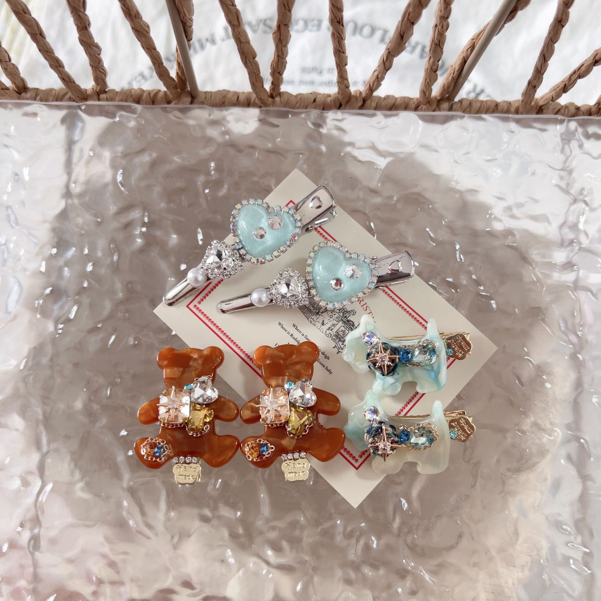 한국식 라이트 럭셔리 하이 엔드 스위트 라인스톤 러브 베어 헤어핀 우아한 올 매치 사이드 클립 덕빌 클립 헤어 액세서리 여성용스토어 가기