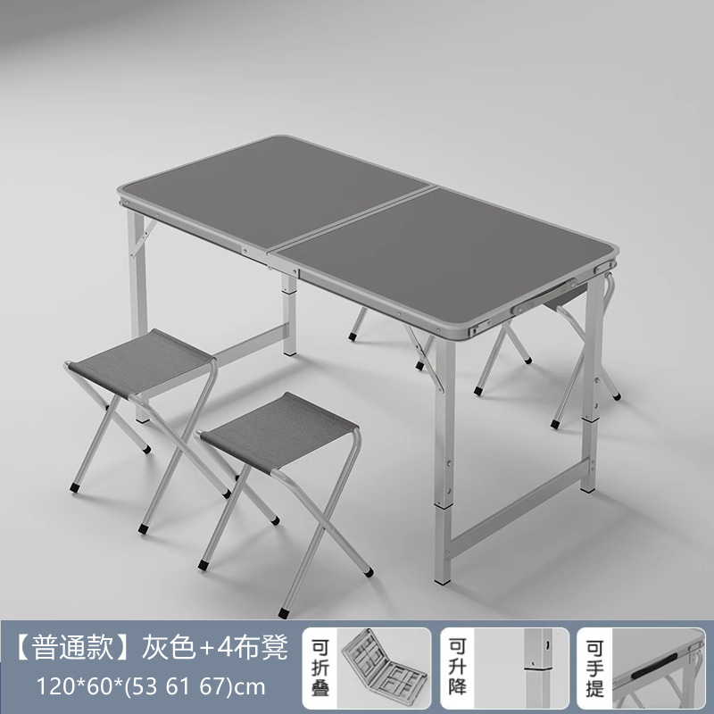 • 업그레이드된 두꺼운 모델 - 알루미늄 합금 접이식 긴 테이블 - 그레이 [120cm] + 알루미늄 스툴 4개
