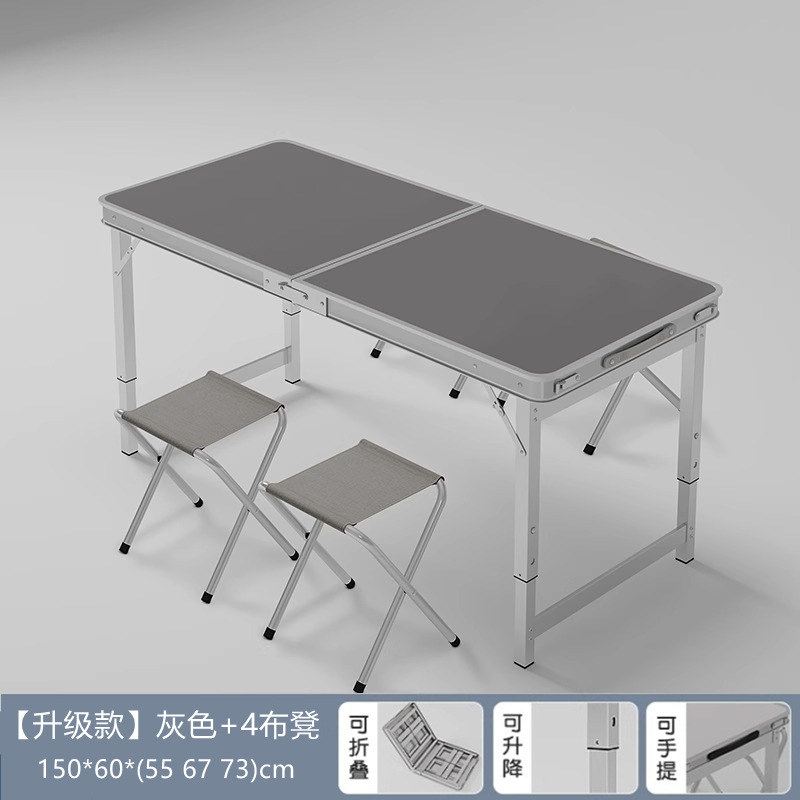 • 업그레이드된 두꺼운 모델 - 알루미늄 합금 접이식 긴 테이블 - 그레이 [150cm] + 천 스툴 4개