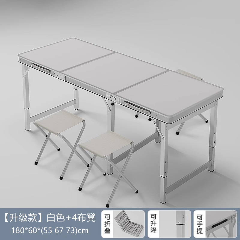 • 업그레이드된 두꺼운 모델 - 알루미늄 합금 접이식 긴 테이블 - 흰색 [180cm] + 천 스툴 4개