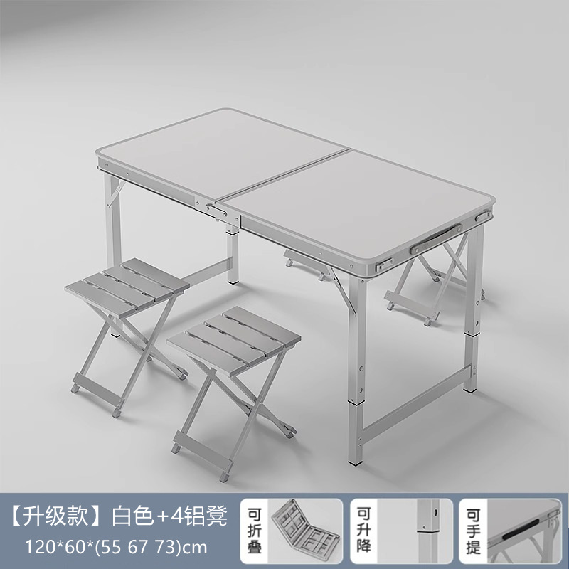 • 업그레이드된 두꺼운 모델 - 알루미늄 합금 접이식 긴 테이블 - 흰색 [120cm] + 알루미늄 스툴 4개