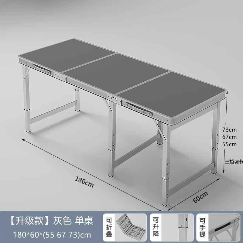 • 업그레이드된 두꺼운 모델 - 알루미늄 합금 접이식 롱 테이블 - 그레이 [180cm]
