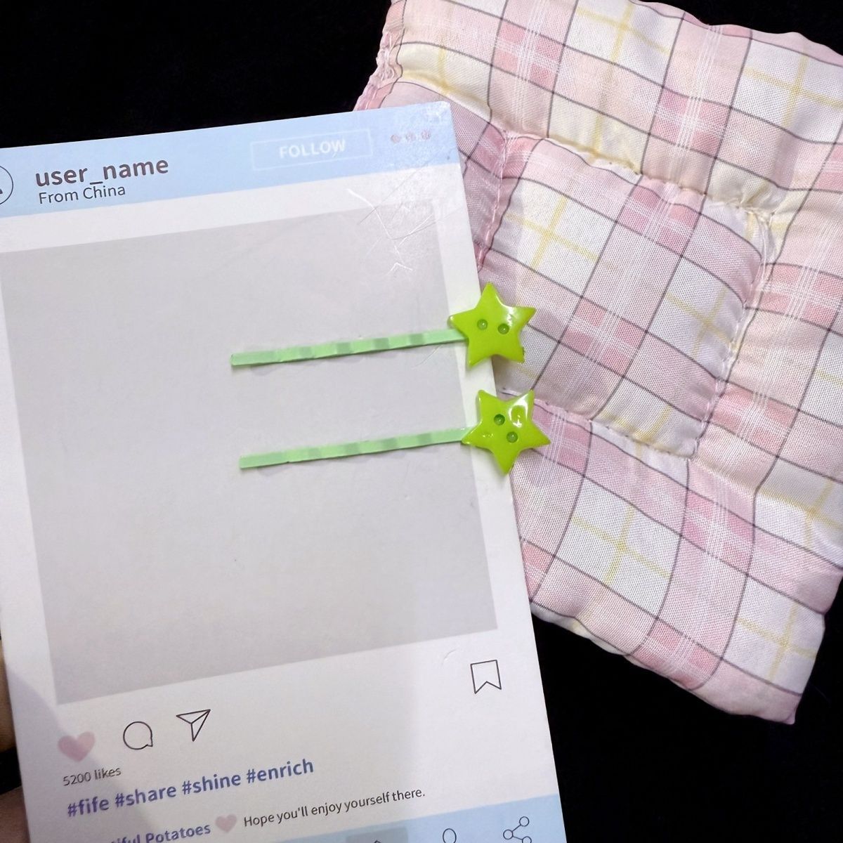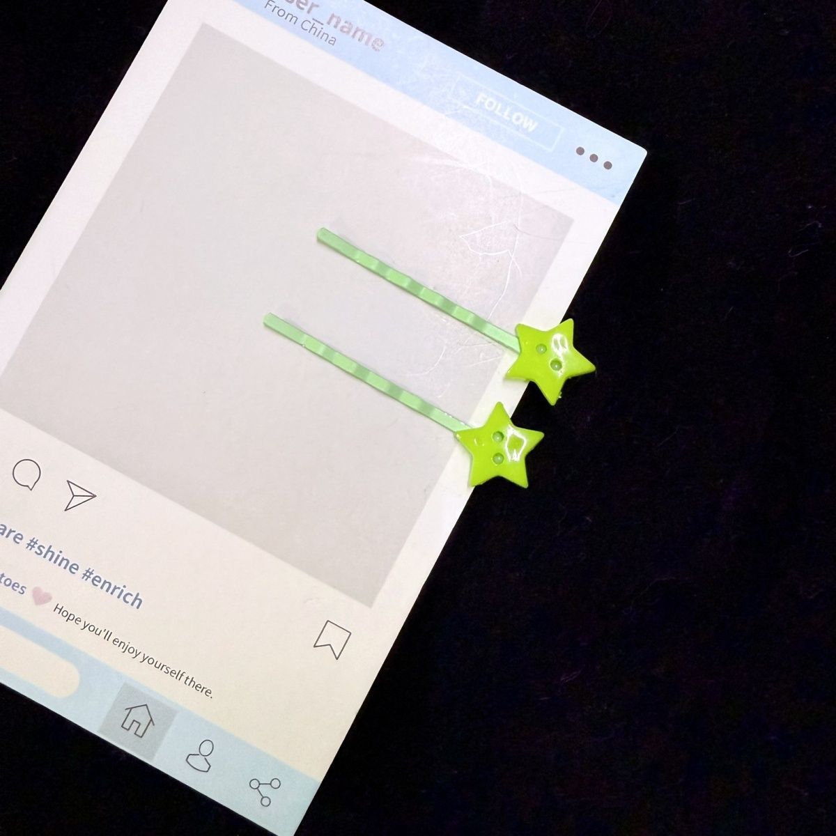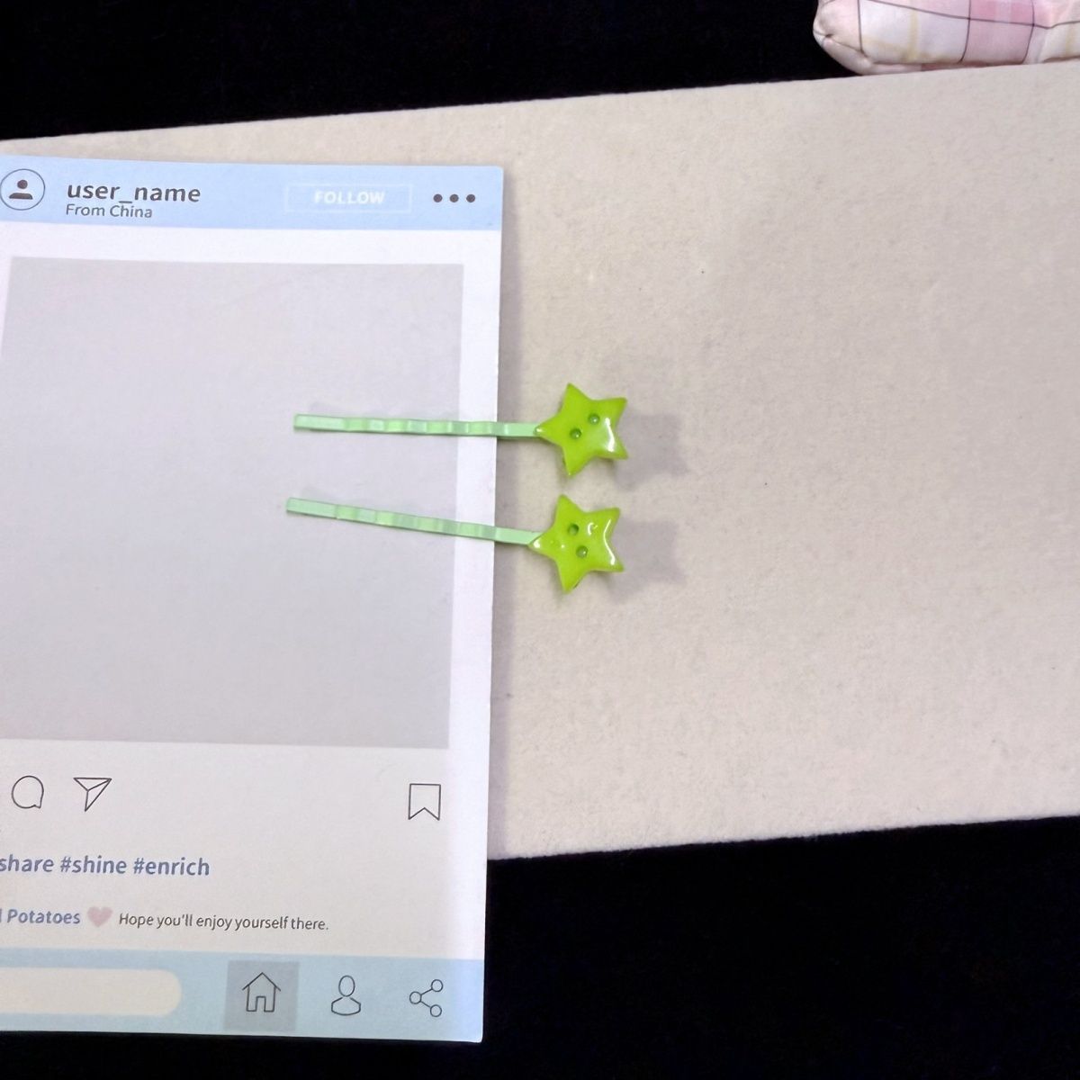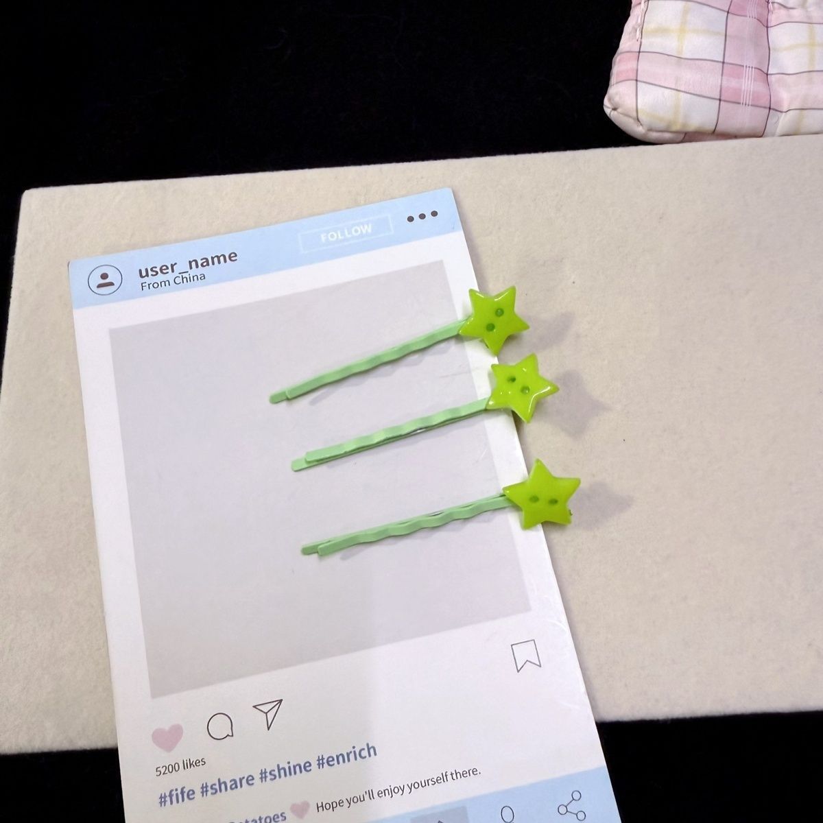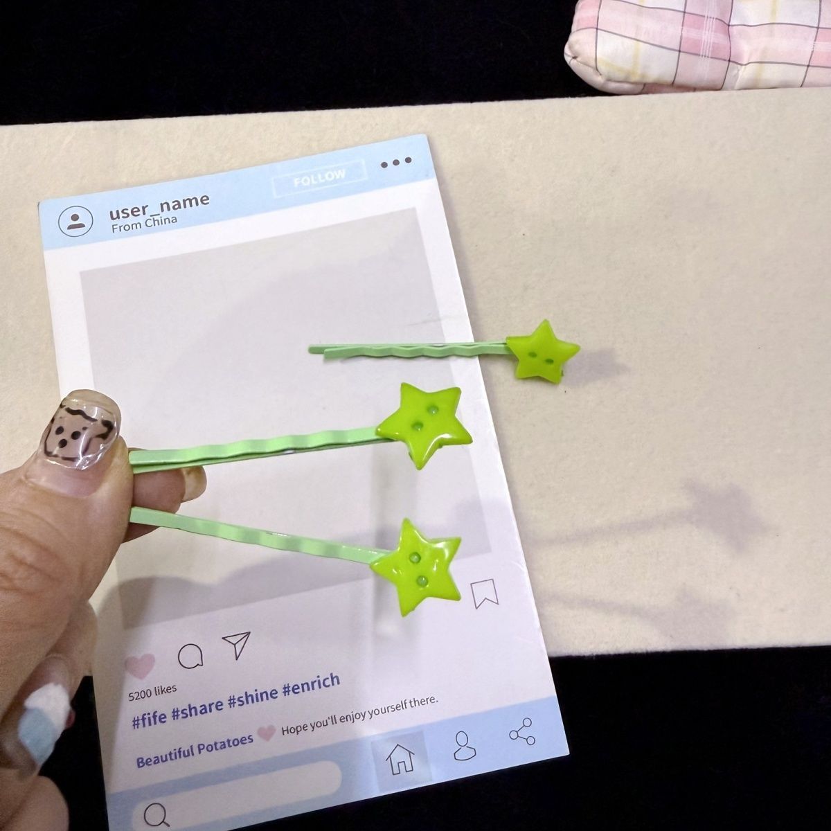녹색 별 앞머리 소녀 불규칙한 측면 머리핀 원라인 머리핀 머리핀 머리핀 여름 신선함