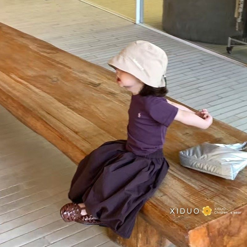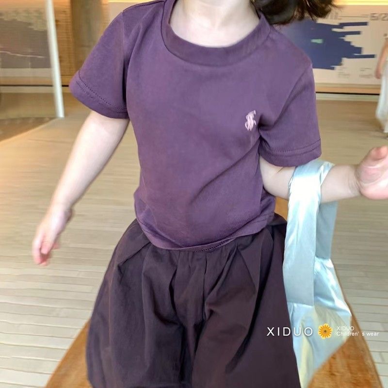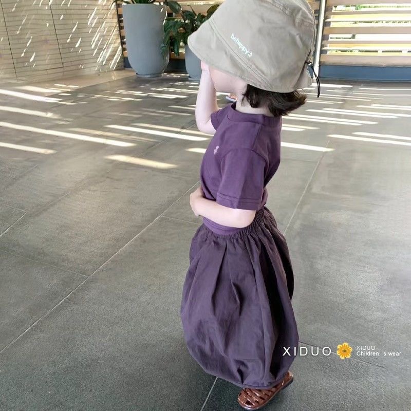 아동복 소녀의 여름 보라색 블루머스 새 스타일 소녀의 세련된 게으른 스타일 편안한 올 매치 무 와이드 레그 바지스토어 가기