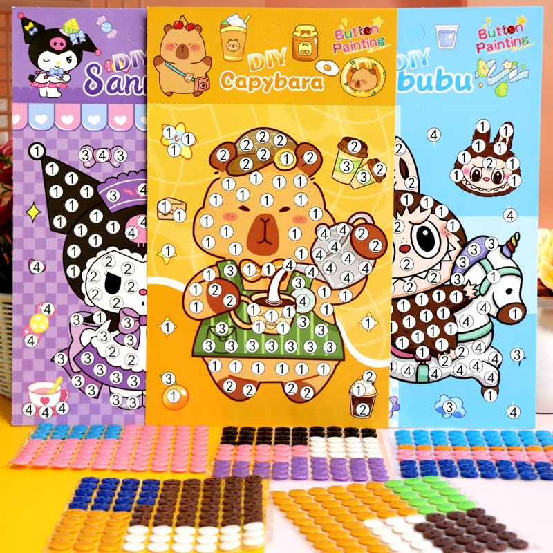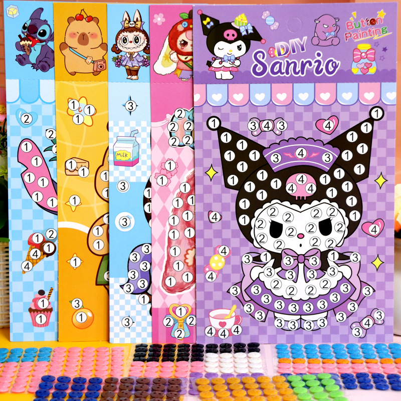 Sanrio Kuromi Capibara Melody Labubu 스티치 종이 어린이 만화 수제 버튼 스티커