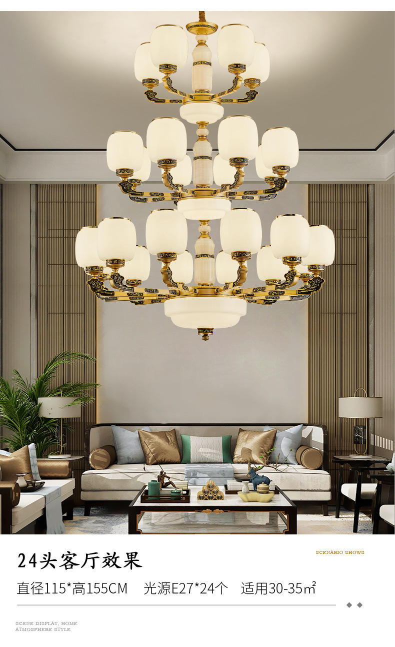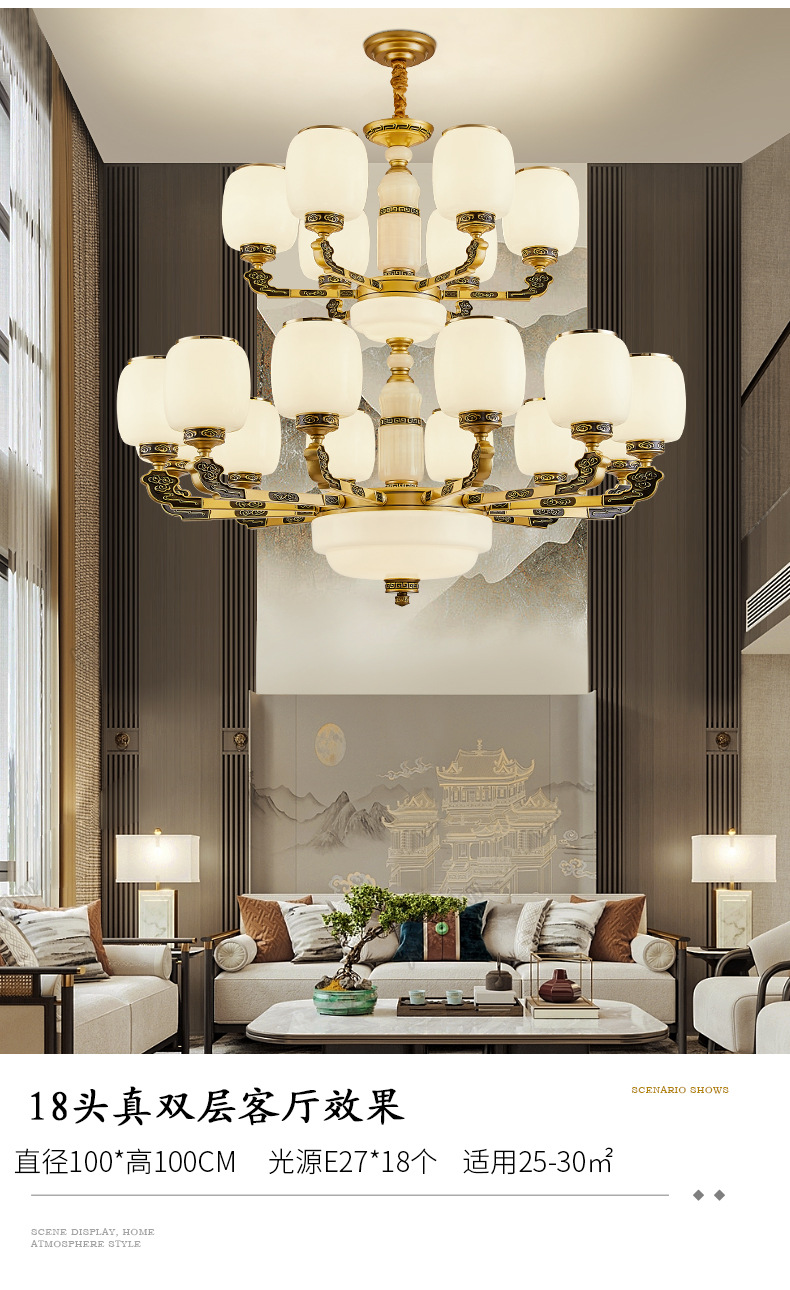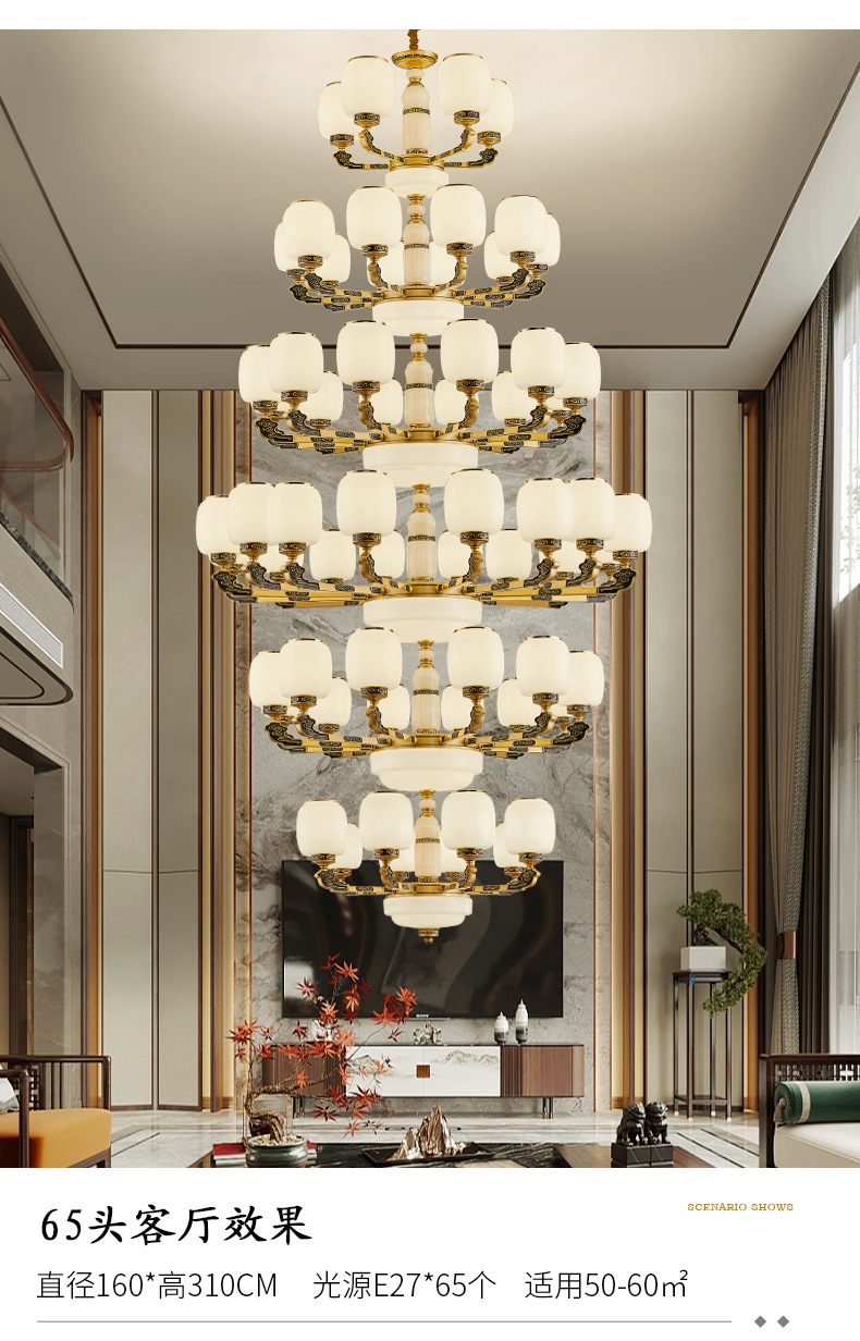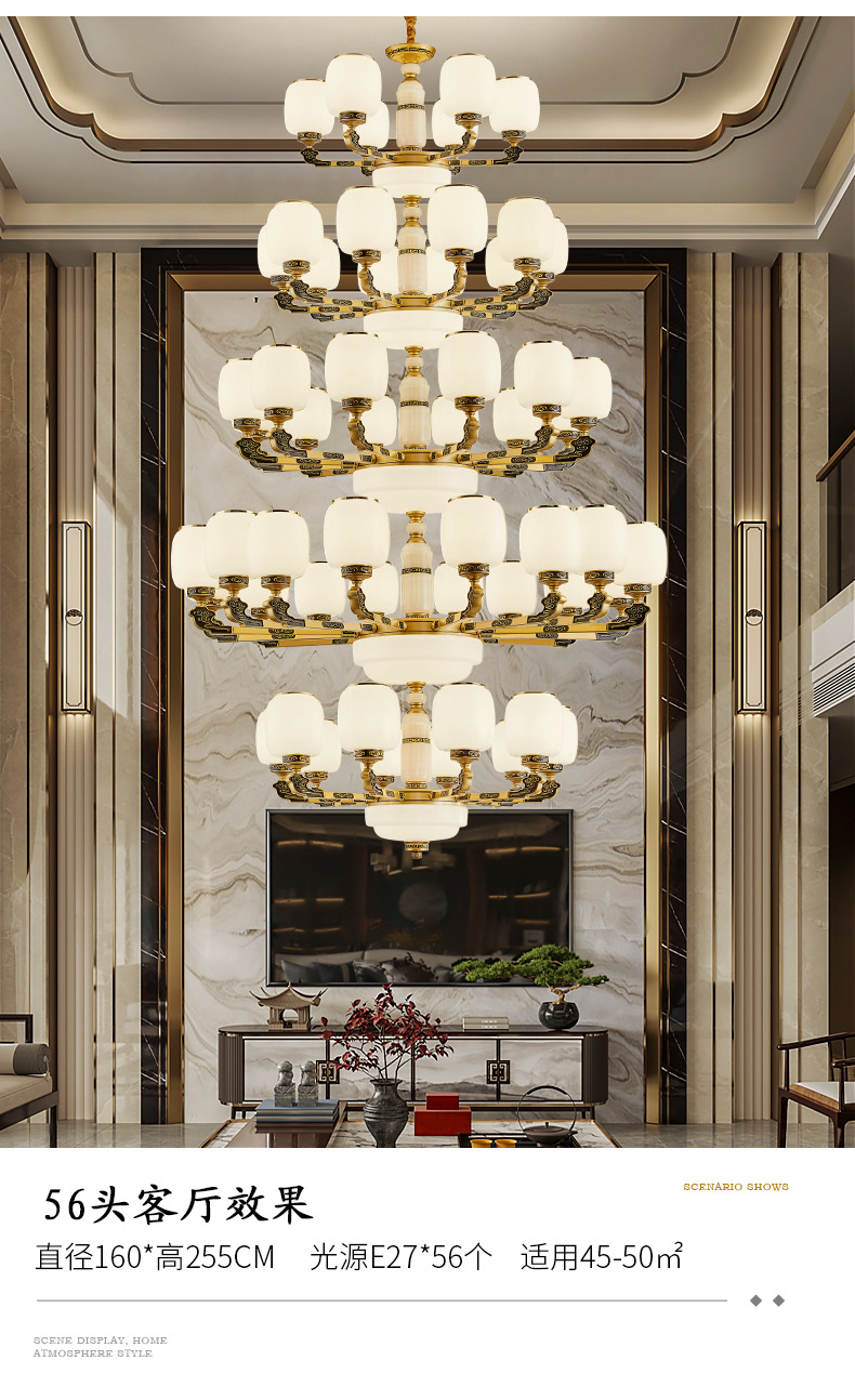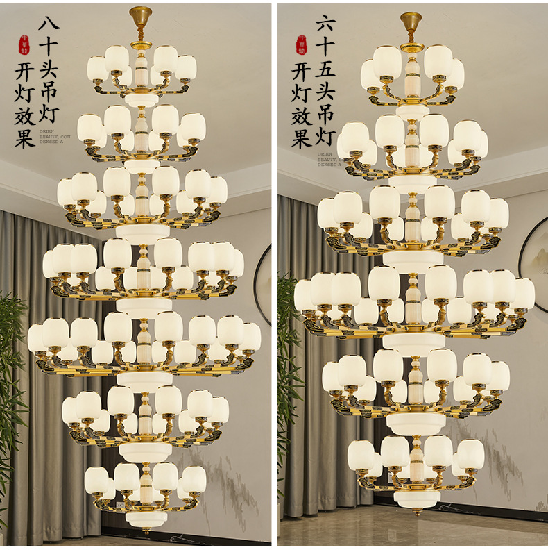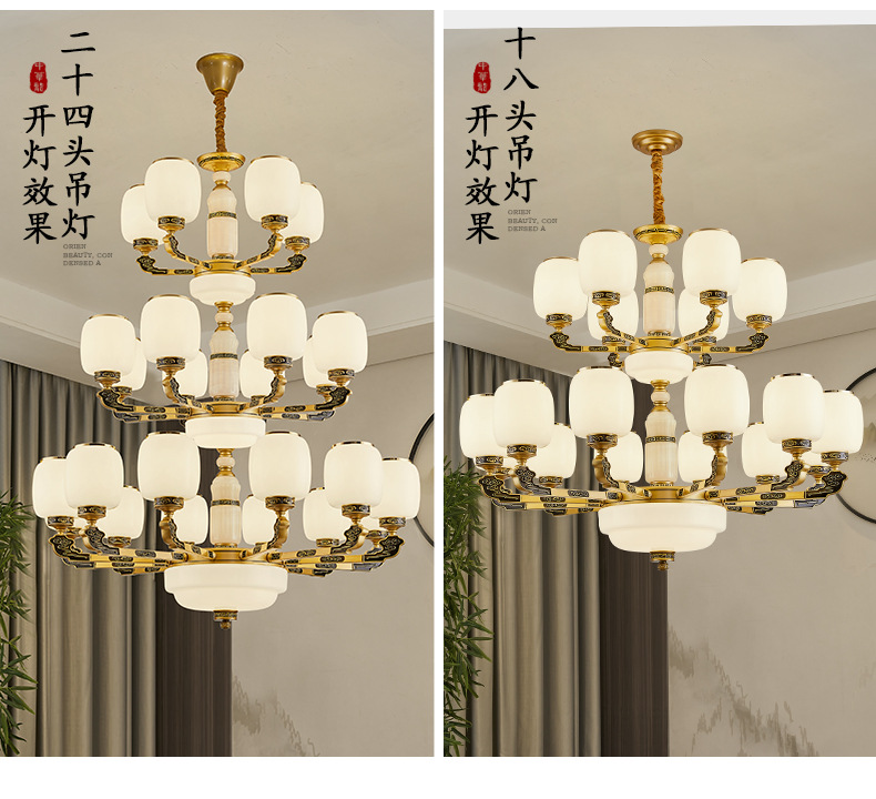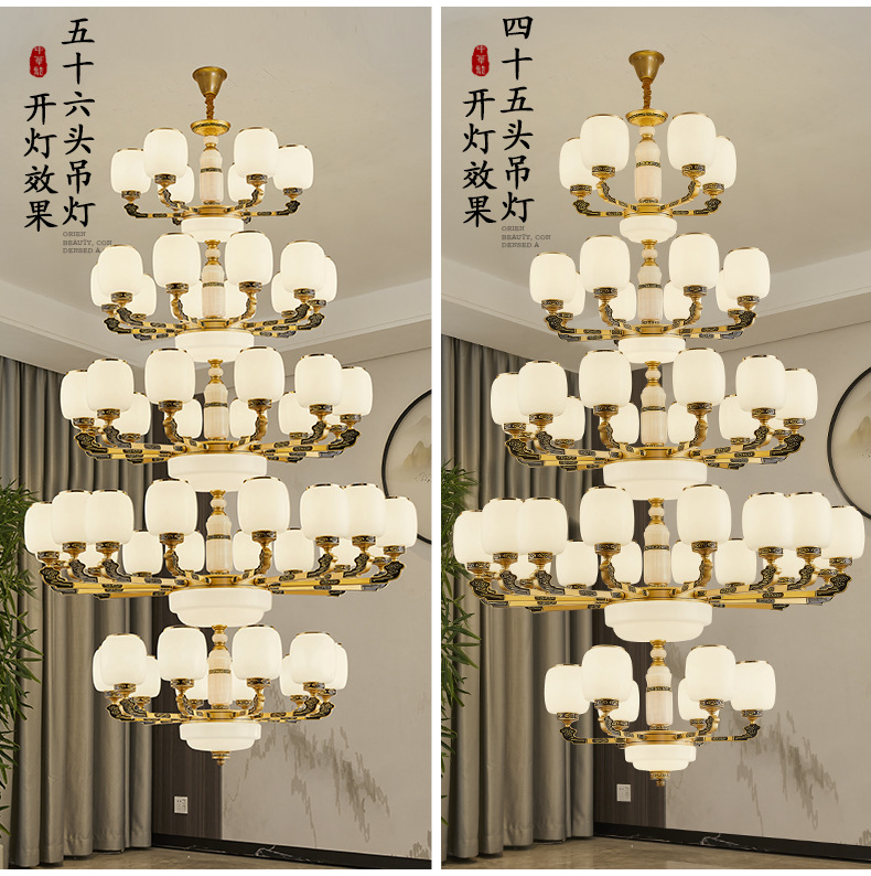 새로운 중국식 빌라 샹들리에 거실 램프 대기 로비 자체 건축 주택 빌라 헤드 라이트 복합 건물 조명스토어 가기
