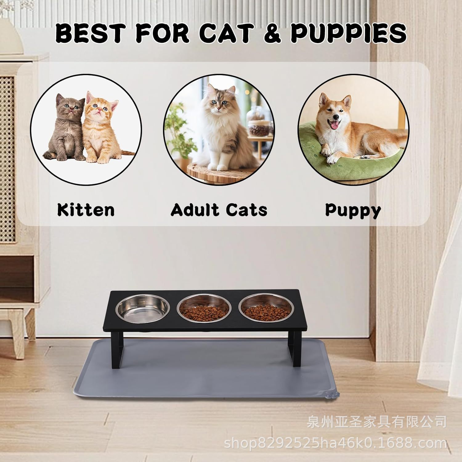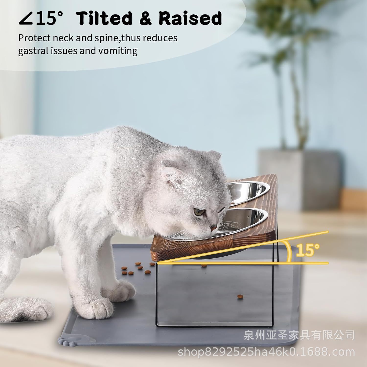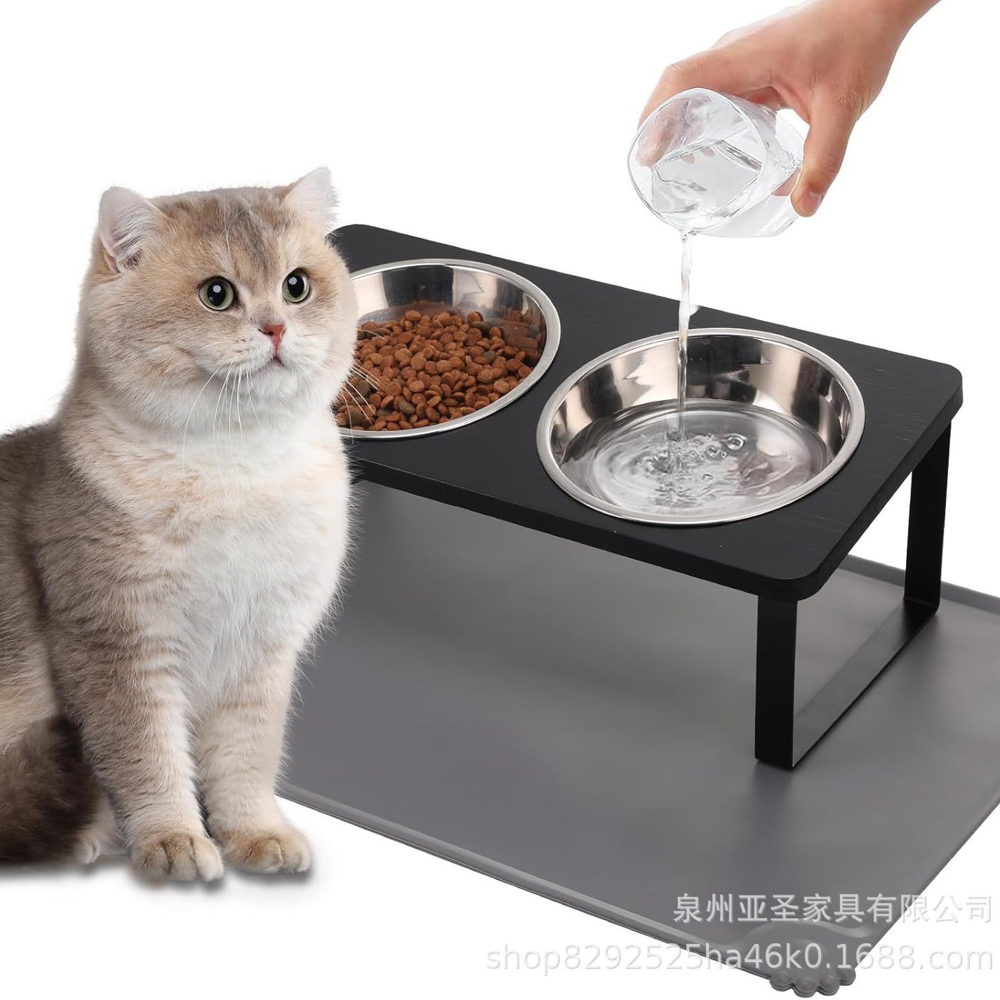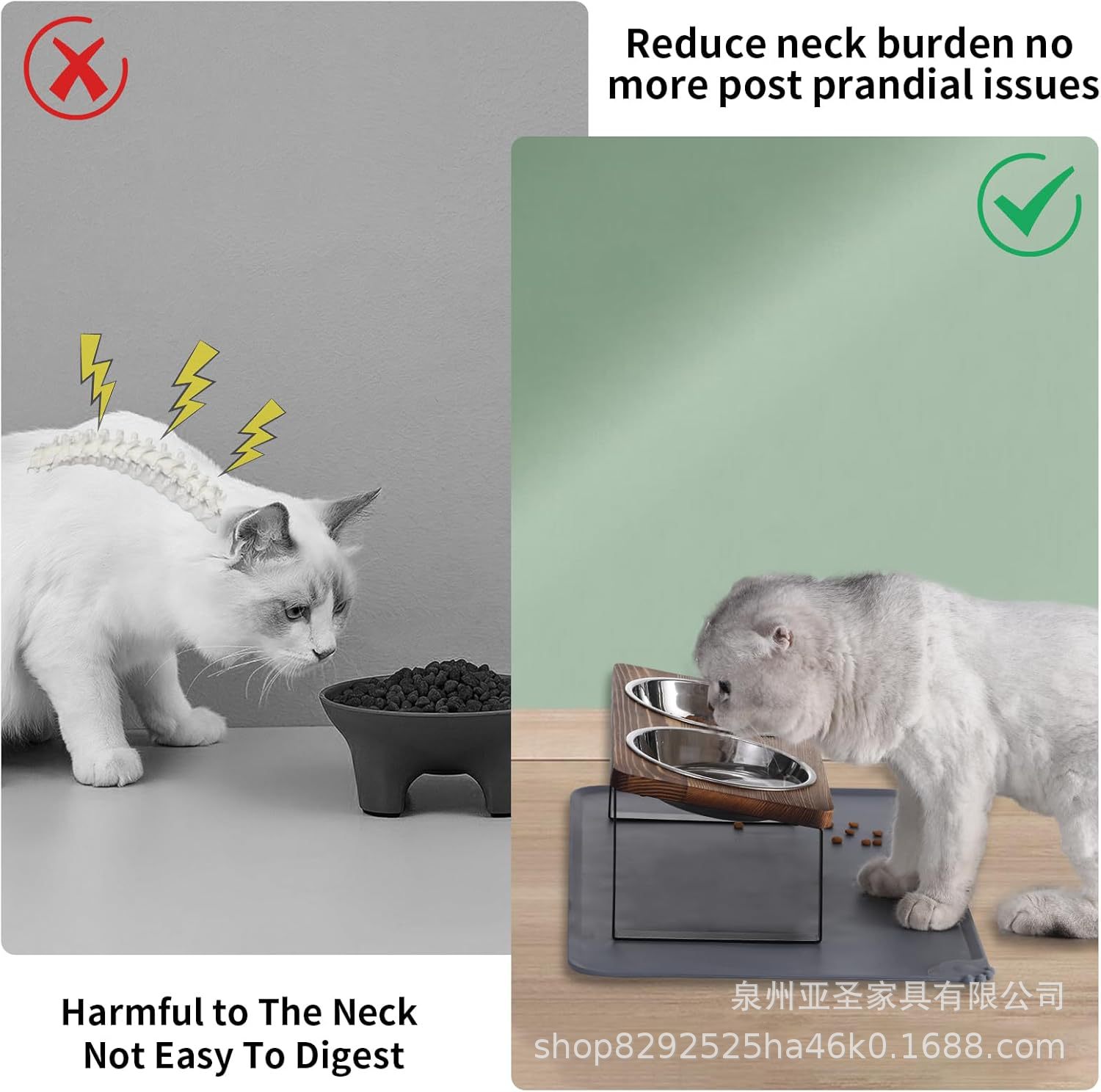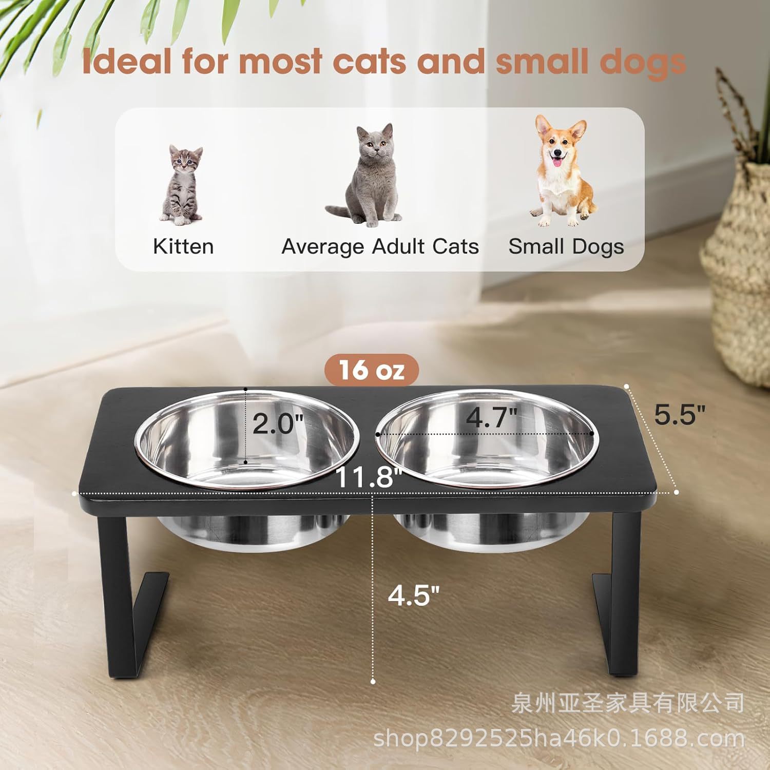 간단한 나무 고양이 그릇 랙 애완 동물 피더 바닥 스탠딩 더블 그릇 애완 동물 그릇 랙 나무 철 개 그릇 높이 랙