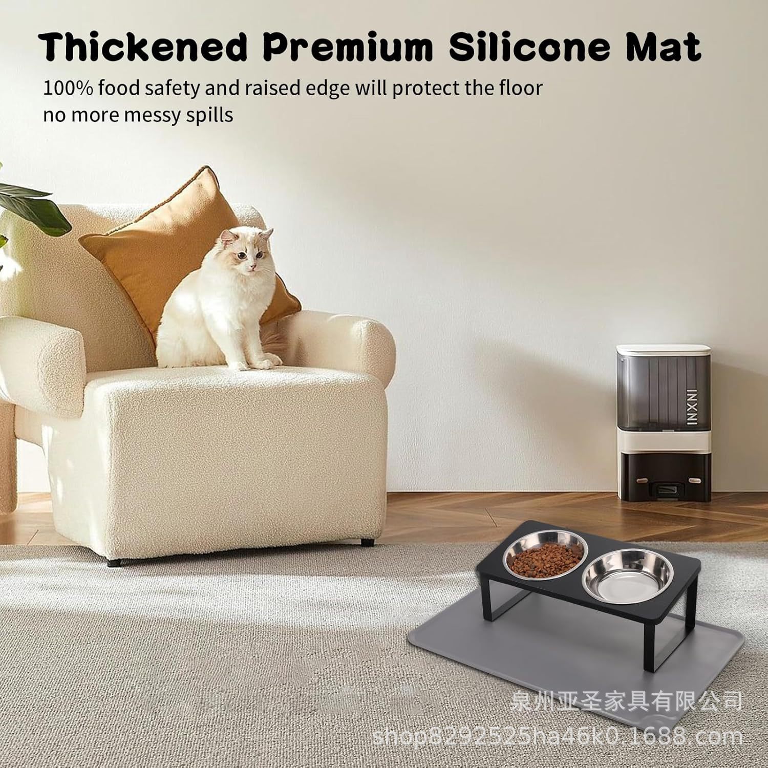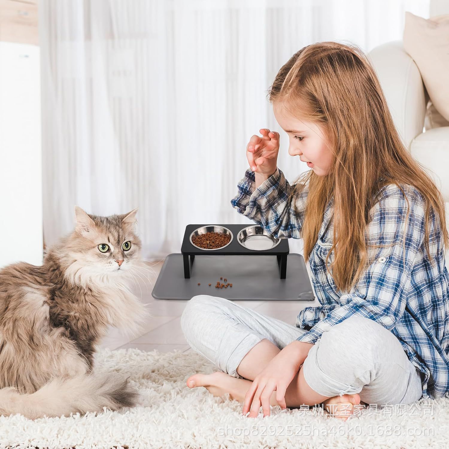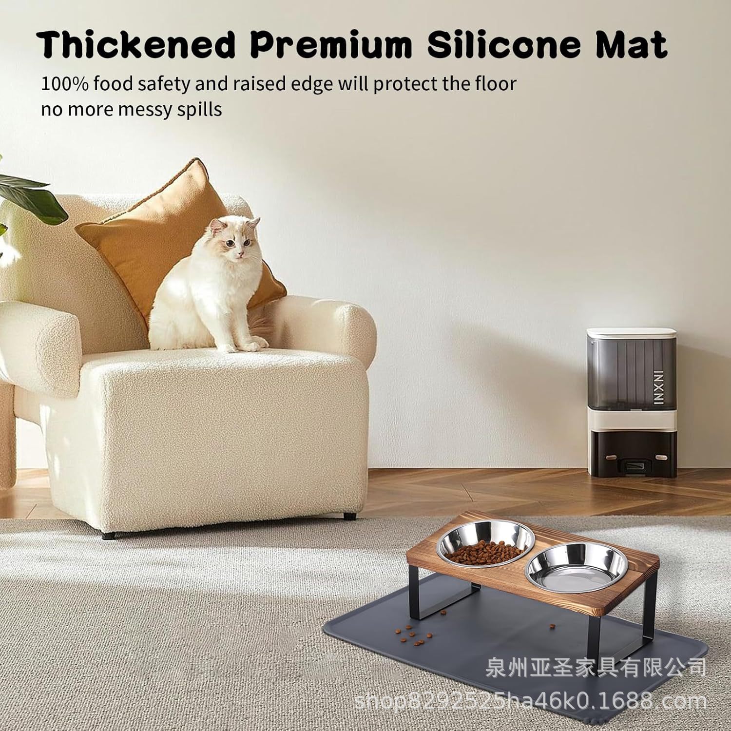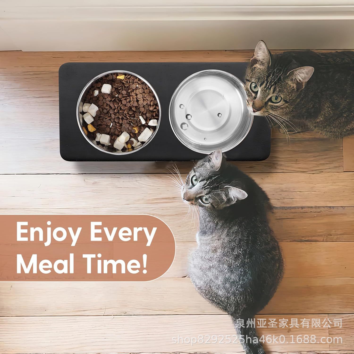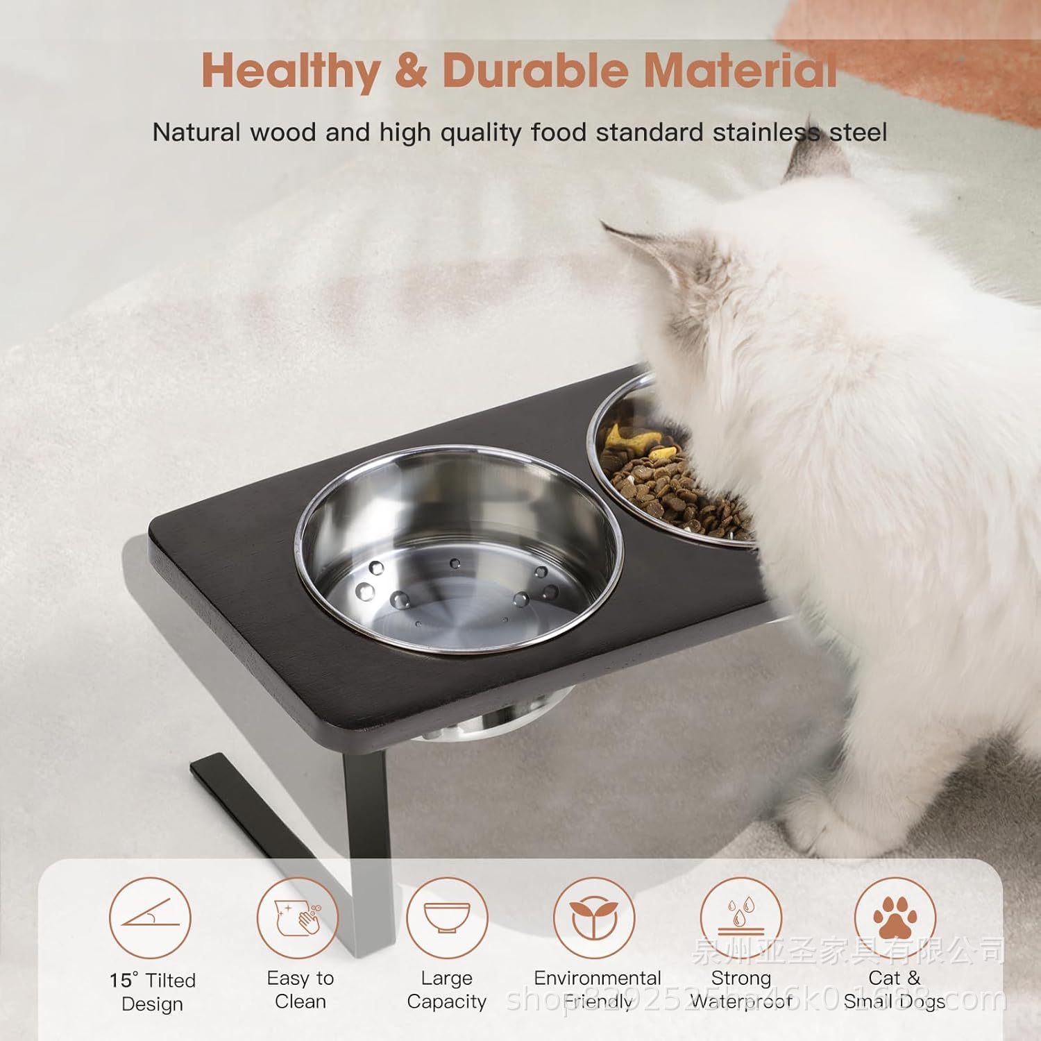 간단한 나무 고양이 그릇 랙 애완 동물 피더 바닥 스탠딩 더블 그릇 애완 동물 그릇 랙 나무 철 개 그릇 높이 랙