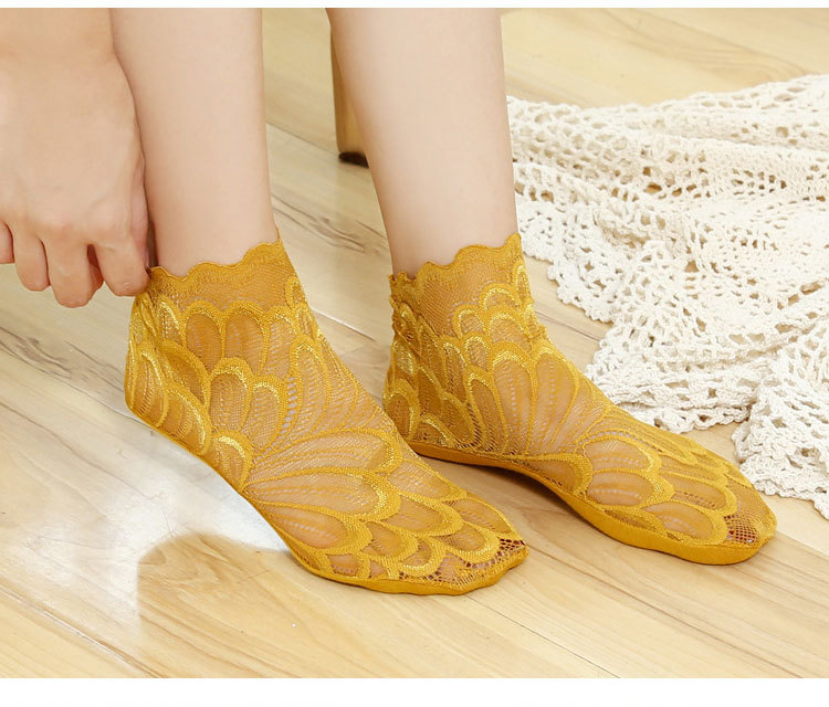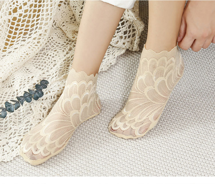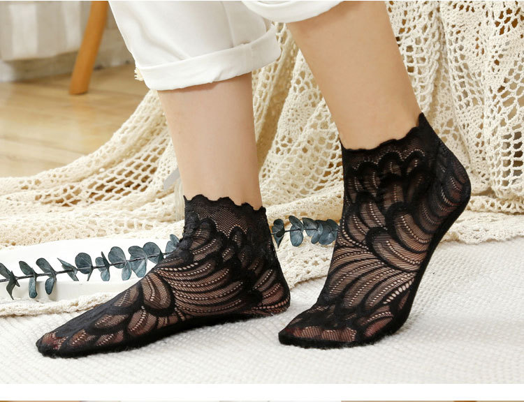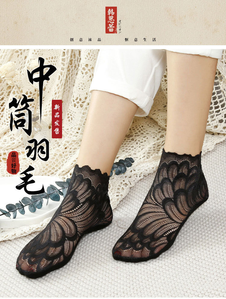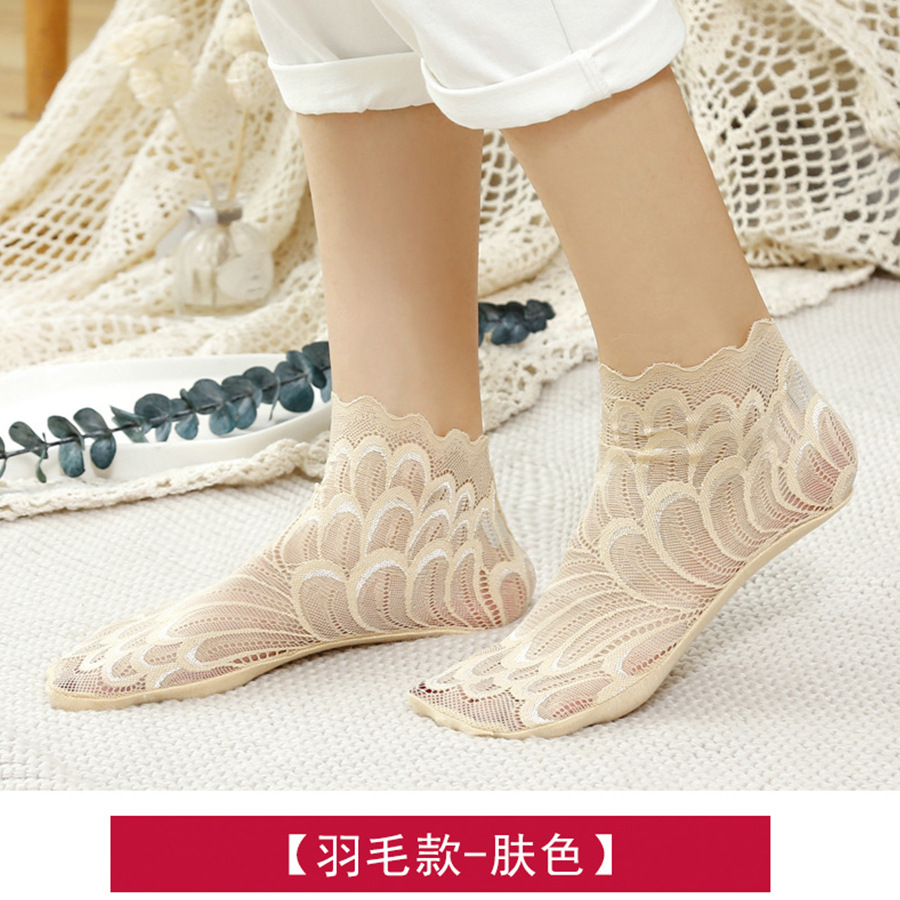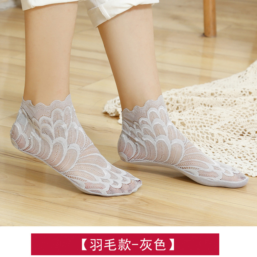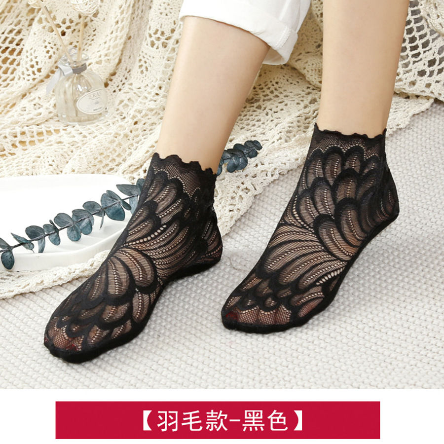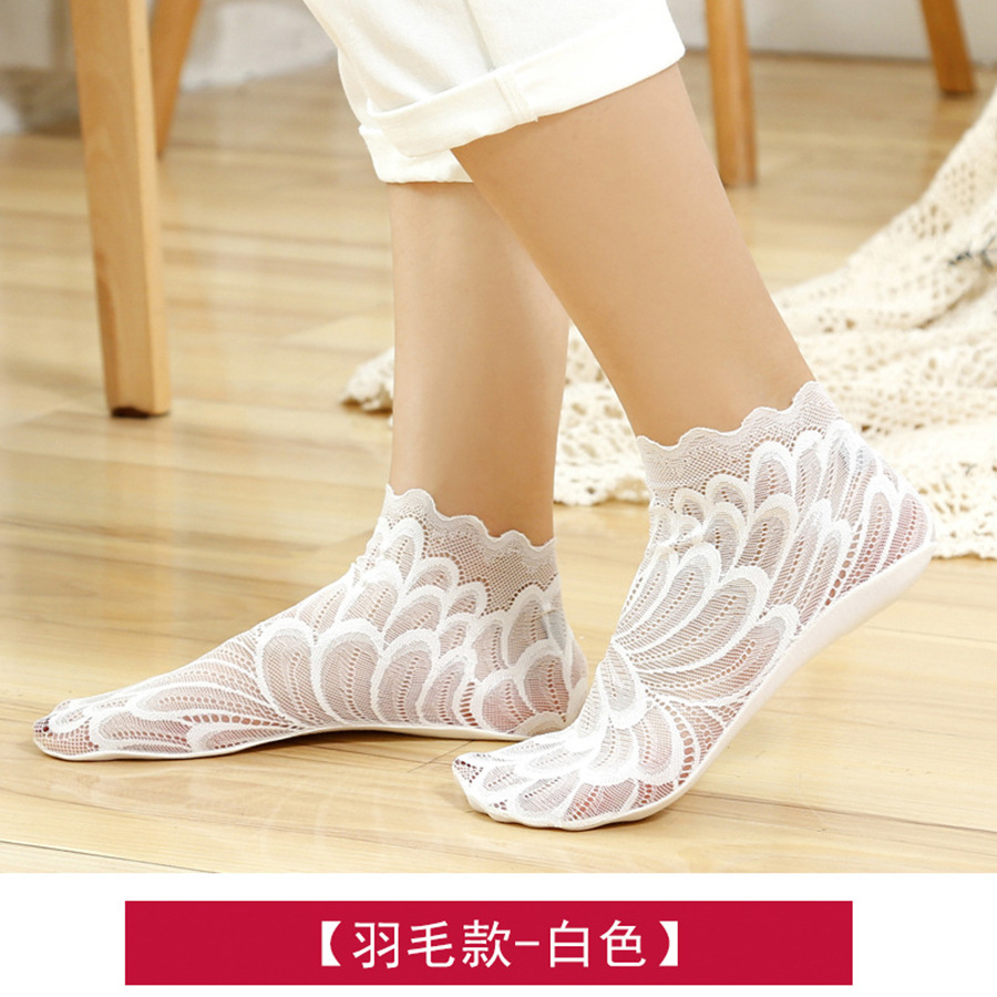 양말 여성용 짧은 양말 보트 양말 귀여운 단색 통기성 메쉬 레이스 트렌디 한 양말 깃털 짧은 양말