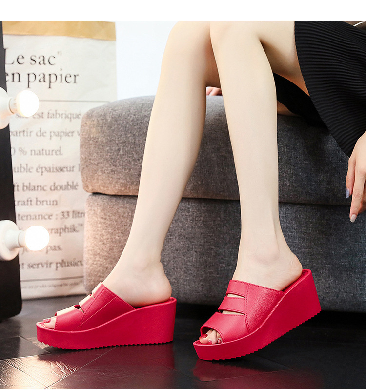 여성용 하이힐 슬리퍼, 여름 아우터, 두꺼운 밑창, 욕실, 목욕, 가정용, 웨지힐, 플랫폼 슈즈, 중공 미끄럼 방지 샌들
