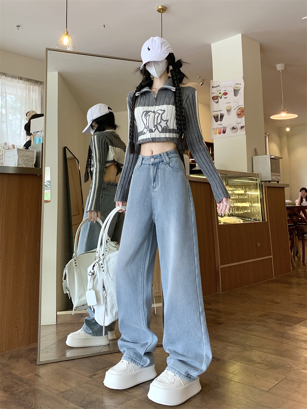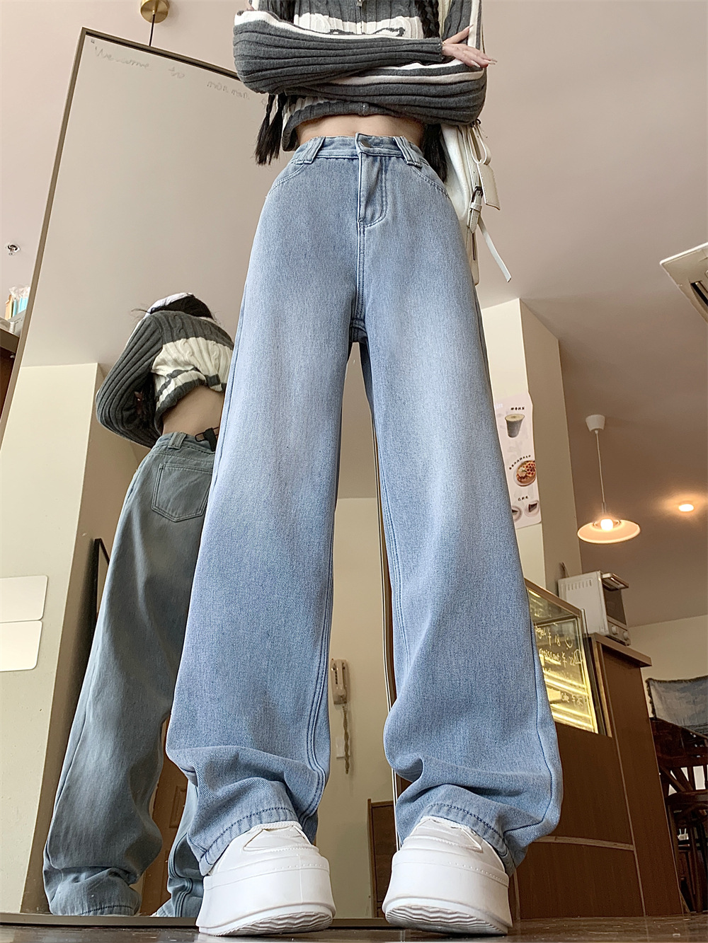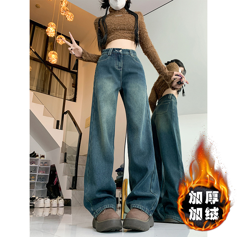 플러스 사이즈 기모 스트레이트 레그 청바지 여자 겨울 2024 새로운 통통녀 느슨한 투약 높은 허리 슬리밍 바지스토어 가기