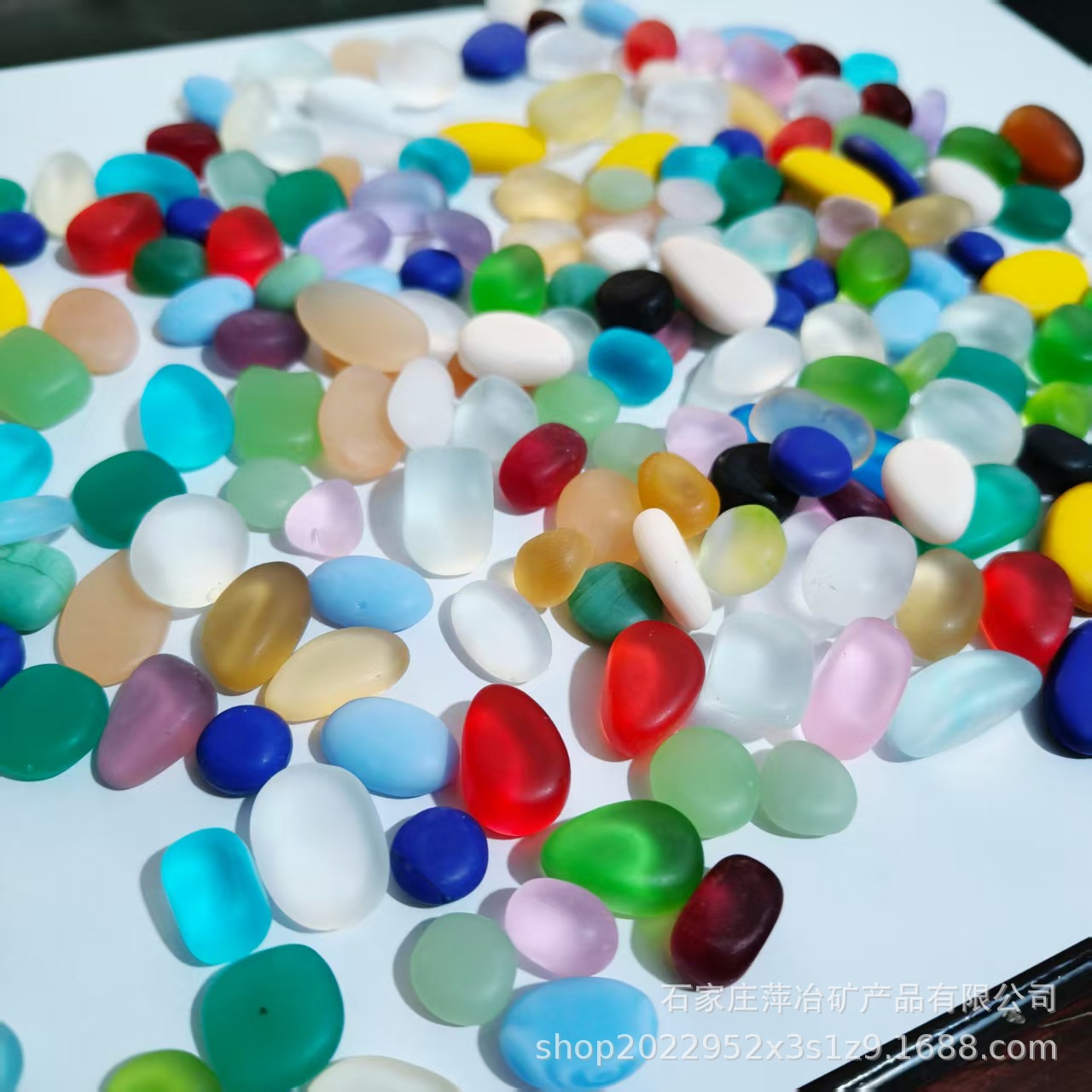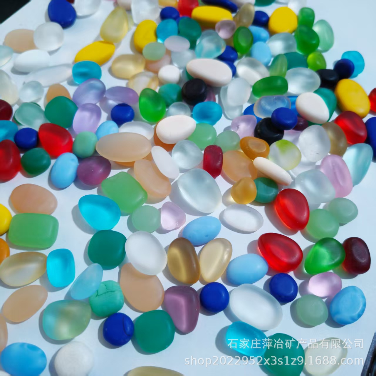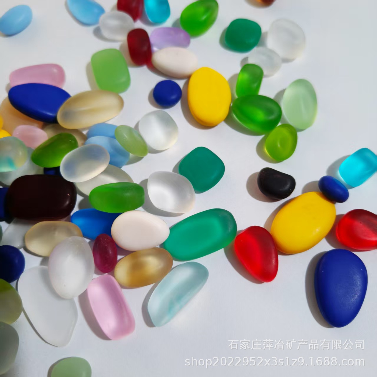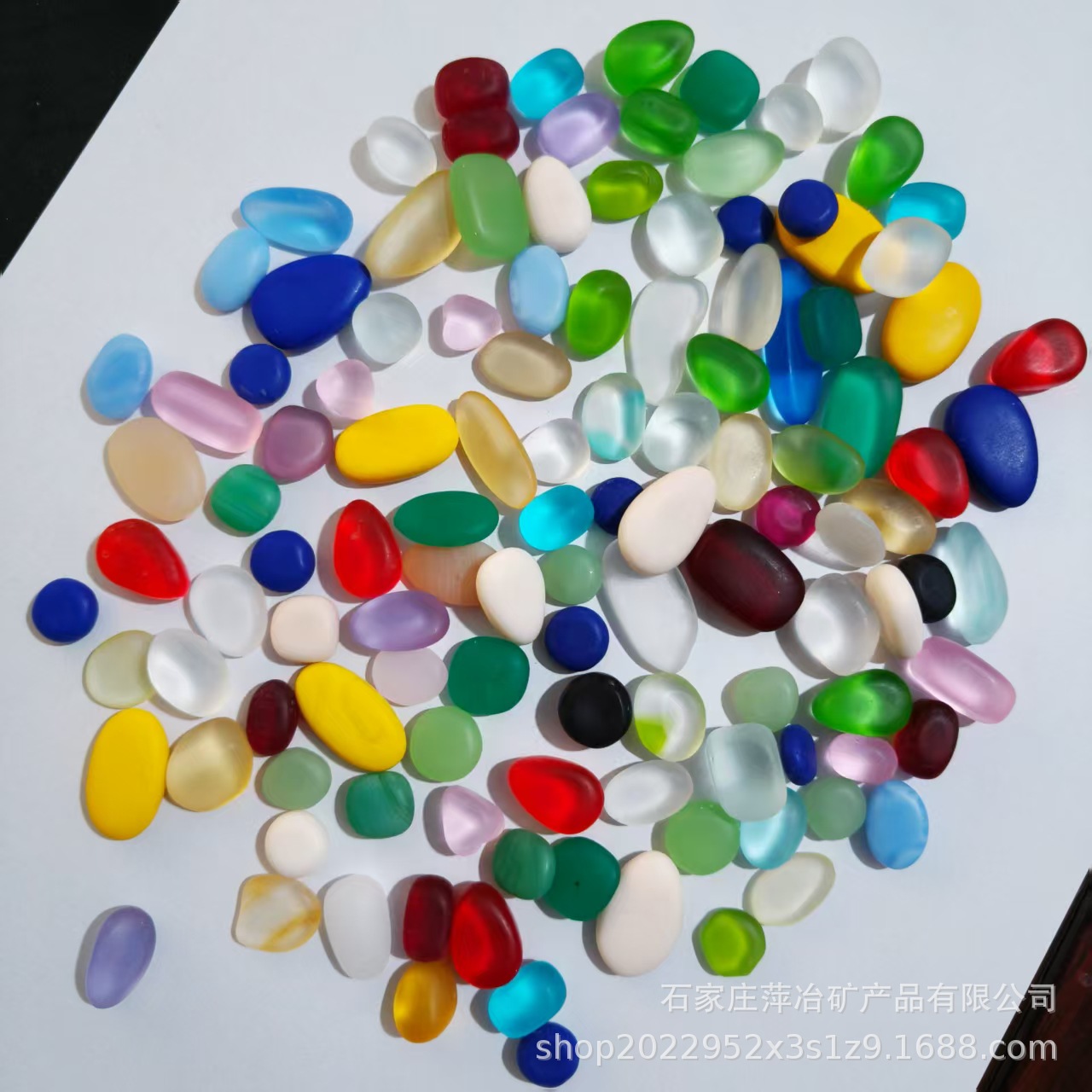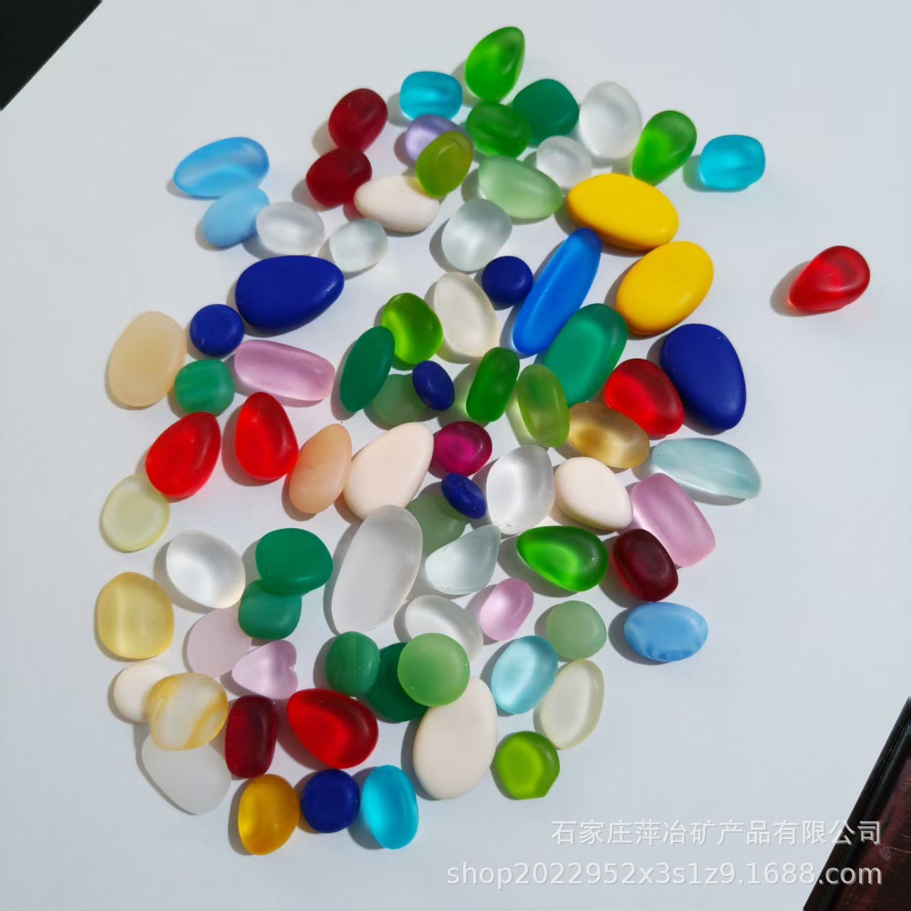 彩色玻璃卵石圆润小石头蒙砂海玻璃造景石,尺寸15-25mm表面细腻蒙砂均匀,不扎手,水族造景装饰摆件,手工DIY配件