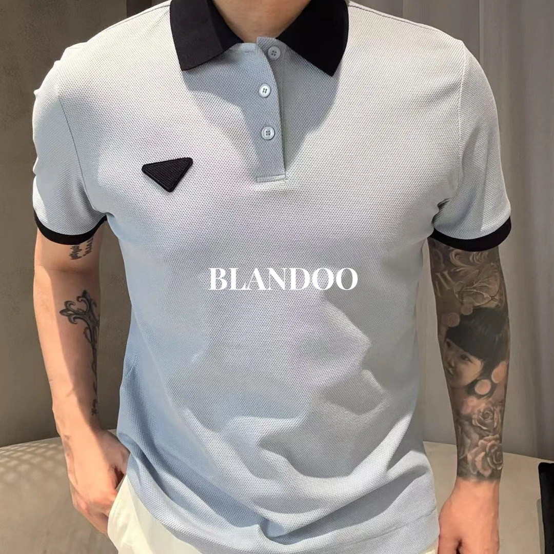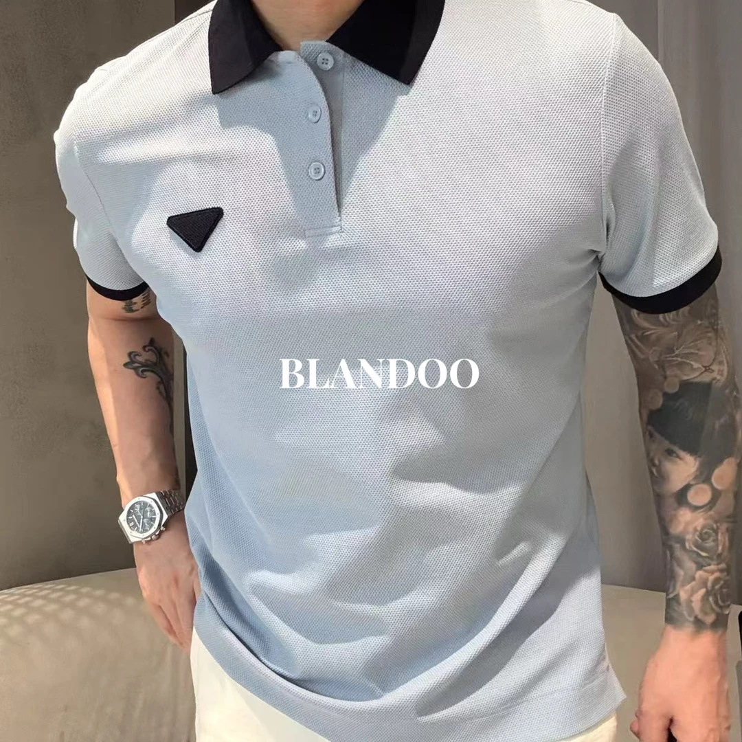 [여름 새로운] 패션 다재다능한 트렌드 간단한 단색 디자인 감각 남성 러피 잘 생긴 하이 퀄리티 옷깃 짧은 소매스토어 가기