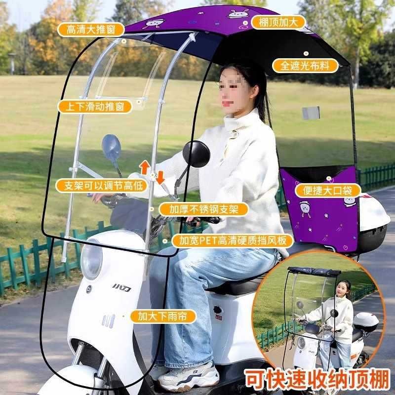 전기 자동차 차양, 새로운 탈착식 완전 수축 접이식 차양, 스쿠터 파라솔, 방풍 및 방수스토어 가기